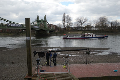Media crews at Hammersmith are getting ready for the Boat Race.