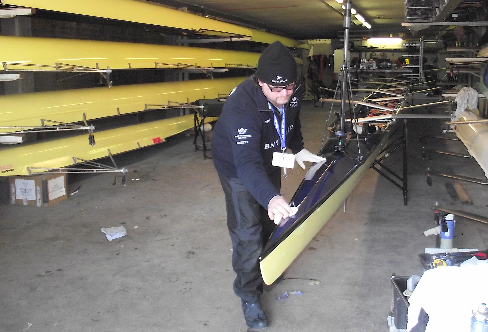 The morning of the Boat Race – polishing the Oxford Boat 2013.