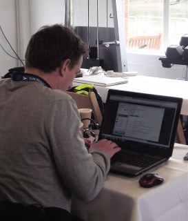 Today, of course, the internet has replaced watertight containers. Martin Gough produces the live text from the Media Centre at the finish.
