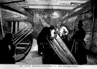 The night before the Boat Race – polishing the Oxford Boat 1874.