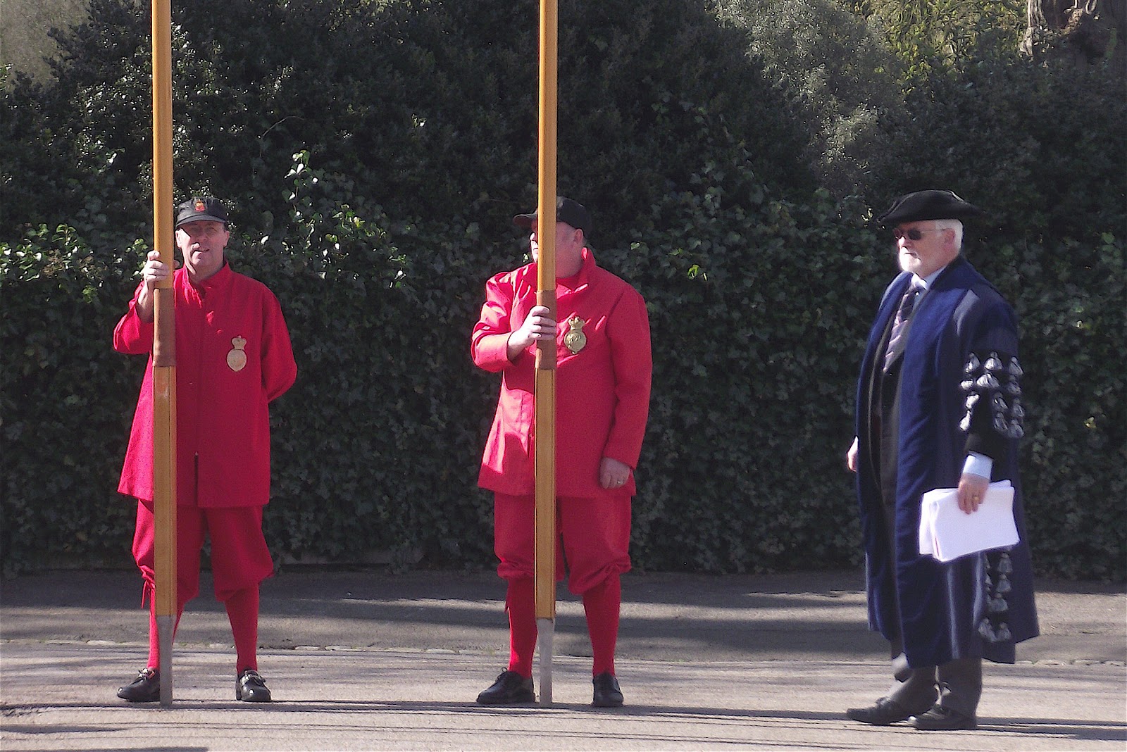 The two Queen’s Watermen on the left are wearing a modern, lightweight version of their traditional heavy woolen costume, something which is much more comfortable to row twenty-five miles in. The gentleman on the right is the Beadle of the Waterman’s Company. The office of beadle is a very old one, he is an official of an organisation who assists in its running in various ways and may also be charged with keeping order. The most famous holder of such an office is Mr. Bumble, the workhouse beadle in ‘Oliver Twist’ (thankfully the Waterman’s Beadle is much more generous than the Dickens’s character). A 1708 description of his duties is here.