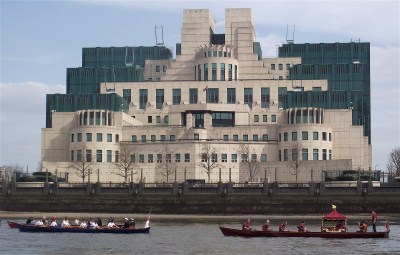 The flotilla reaches the Albert Embankment and the Headquarters of the Secret Intelligence Service (better known as MI6), the British equivalent of the American CIA. MI6’s most famous operative, James Bond, is a Commander in the Royal Naval Reserve – so the Commander in the Royal Navy cutter on the left may be more than he seems… The cutter on the right belongs to the Worshipful Company of Barbers.