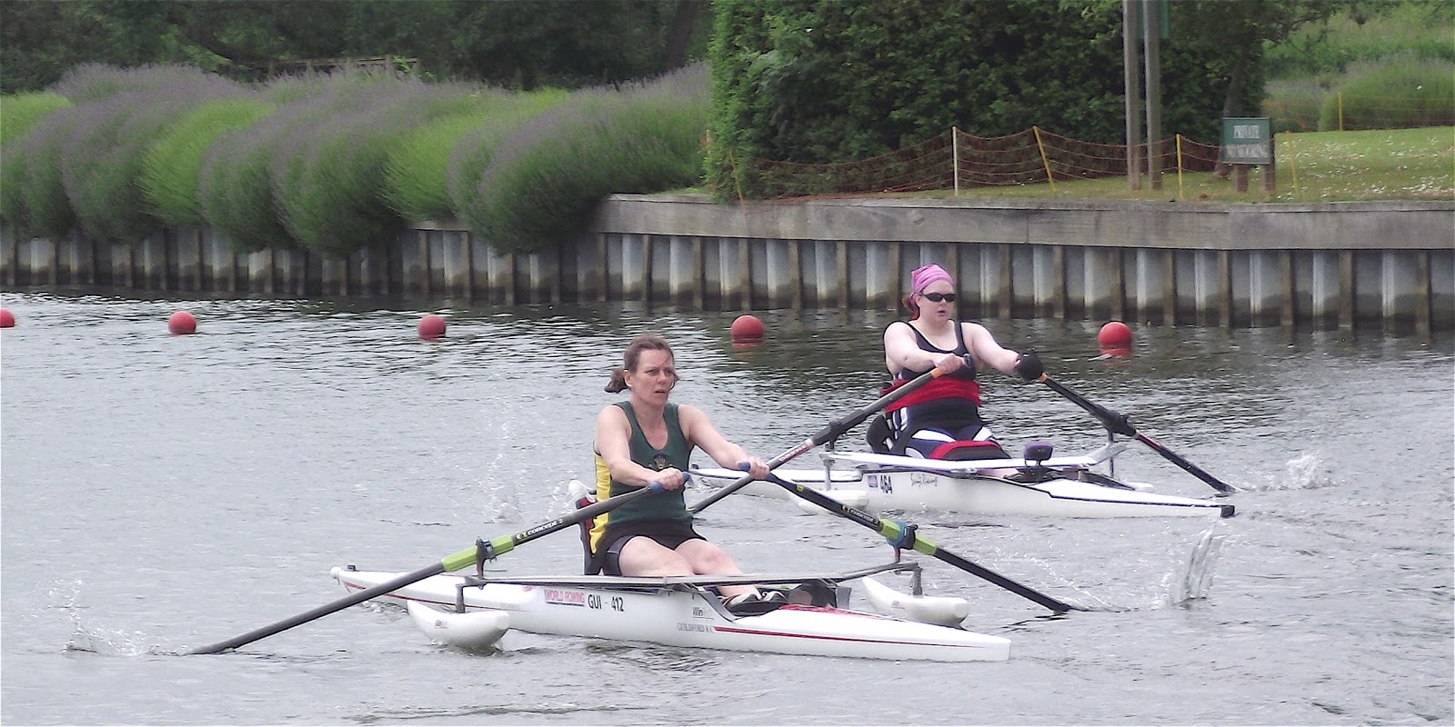 A heat of Adaptive Trunk & Arms 1x. Guildford RC (Birkinshaw) beat Oundle RC (Connon).