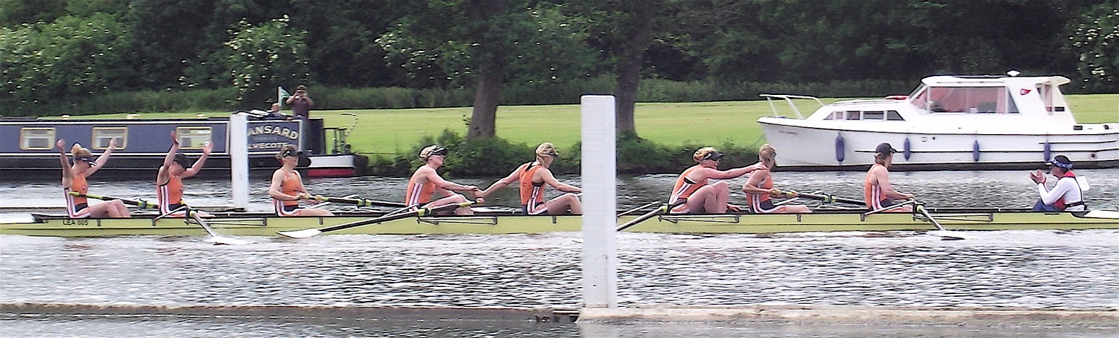 A heat of the School Junior 4x, Eton Excelsior v Gloucester. The Umpire’s view.