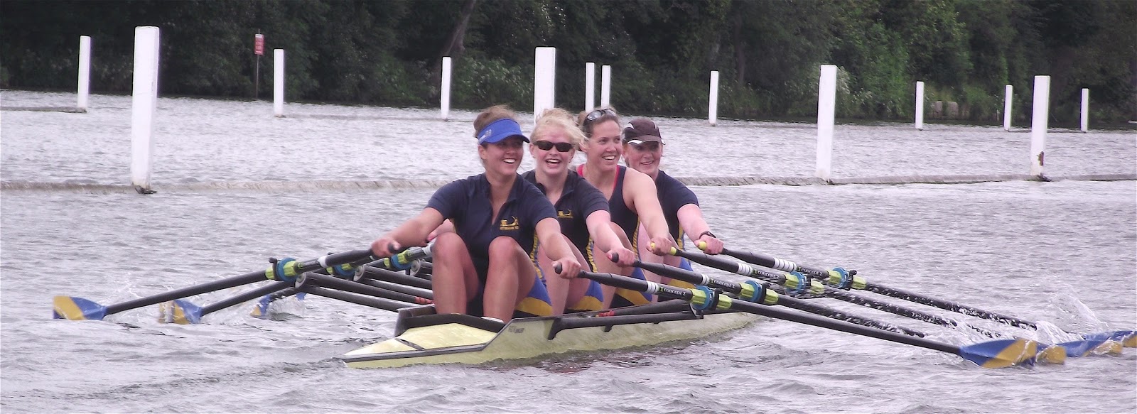 A heat of the Senior 4x. Molesey BC lost to Nottingham RC.