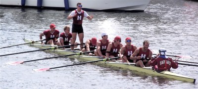 The legendary Harry Parker, Harvard coach for fifty years. It was his 11th Henley win…. In his speech, Henley Chairman Mike Sweeney paid tribute to Harry’s semi-centenary and the crowd responded warmly to the sentiment. I witnessed a most telling incident which showed the respect and affection with which Coach Parker is held. A very senior Steward of the Regatta, a man who is the epitome of the British ‘stiff upper lip’, greeted Harry with a spontaneous hug. You have to be very special for an Englishman of this gentleman’s age and class to act like this.
