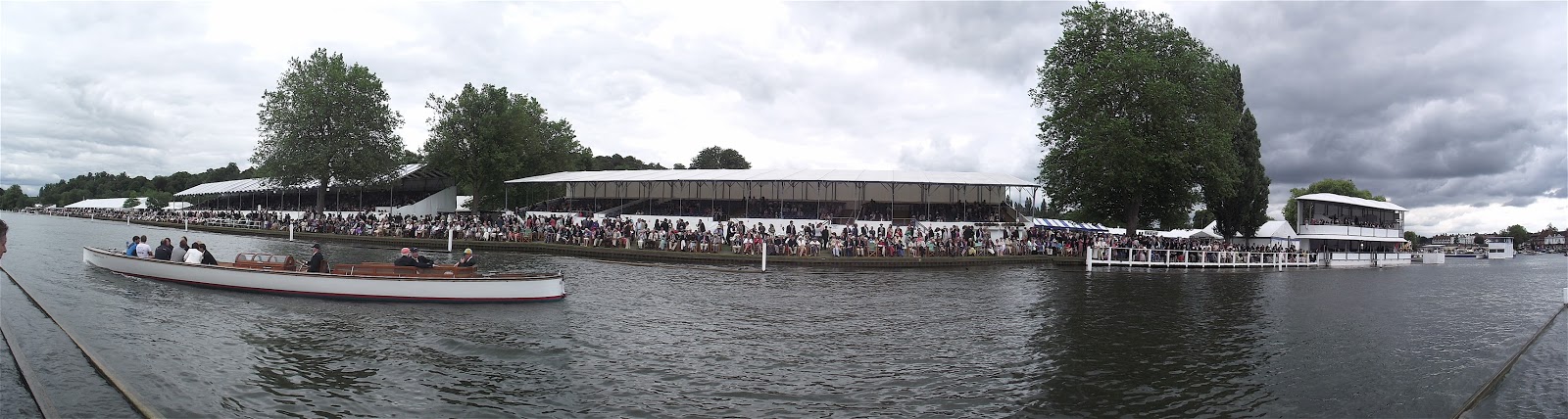 With respect, I would not criticise an immaculately organised event because I was forgetful. Almost everyone has to pass at least four programme sellers on the way to the start, this should be enough. Further, with the exception of Temple Island, Henley Royal Regatta does not own any of the land beyond the Regatta Enclosure. Here the owners prefer to sell pizzas, not programmes.