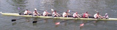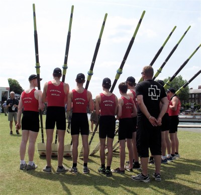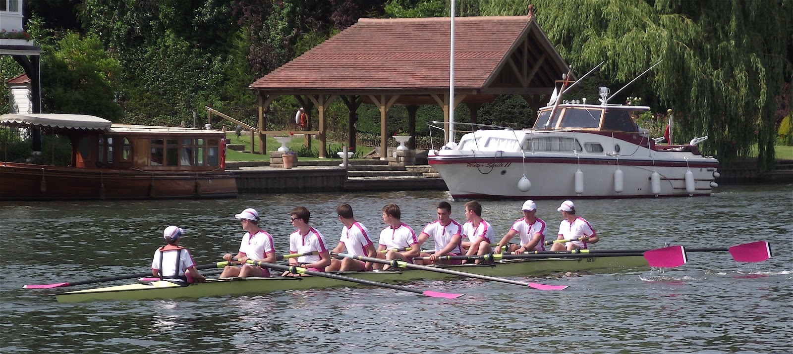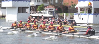 Abingdon School going out to meet Eton in the Princess Elizabeth (Junior M8+). They won by 2 3/4 lengths. They are aiming to win the PE for a third year in succession and do seem to be in a different class to most of their opposition.
