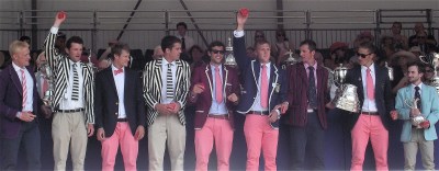 Laga treated the prize giving to a rendition of their club song. It was in Dutch (naturally) and had quite a few verses but, as can be seen by the reaction of Dame Di Ellis on the left, it went down well. Delftsche Studenten Roeivereeniging Laga, Holland, beat Harvard University, USA, by 2 1/4 lengths in a time of 6 minutes and 14 seconds.