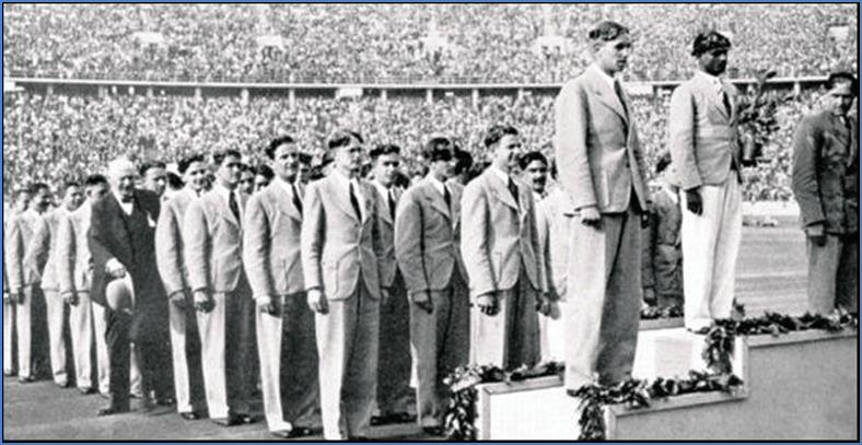 Indian hockey players at the medal ceremony at ‘Olympiastadion’, Berlin.