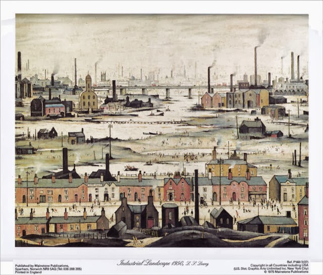 L. S. (Lawrence Stephen) Lowry (1887-1976) was an artist who lived in Manchester and Salford all his life. He was a rent collector by day and a painter by night, attending Manchester Art College under the French impressionist Pierre Adolfe Valette, and afterwards at Salford Royal Technical College School of Art. In Lowry’s time Manchester ranked among the world’s top ten industrial cities and Lowry made the stark industrial landscapes of the Industrial Revolution his own while populating his pictures with life he observed in the streets while collecting rents, always with sketch book in hand. Lowry’s pictures now sell for millions, and a large retrospective is now showing at Tate Britain in London, “Lowry and the Painting of Modern Life”, which will end on 20 October 2013.