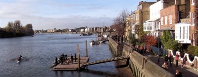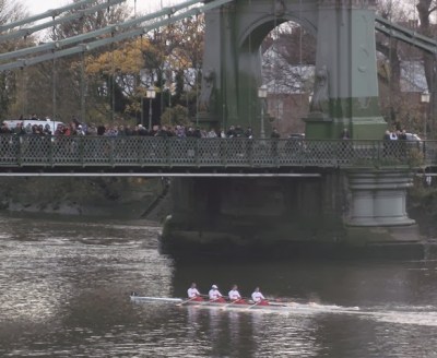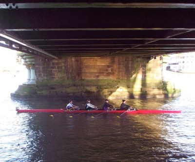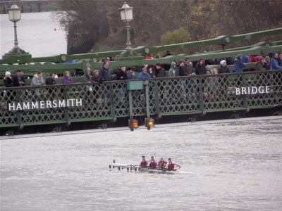 Going to the start. Manchester University BC I under Hammersmith Bridge.
