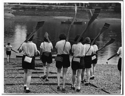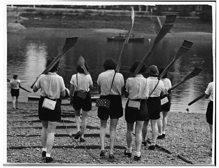 Talking about rowers’ knees and legs, as HTBS did yesterday, well, male ones, it is time to show some female rowers in shorts. However, the most interesting thing with this photograph, depicting some young women carrying their oars down to the River Thames in London in 1939, is the women’s cute little purses. Do you think that these women are vain, bringing their purses with lipstick, face powder, a little mirror perhaps and…? Well, you are wrong. They are only trying to save their lives – in their cute purses are gas masks.