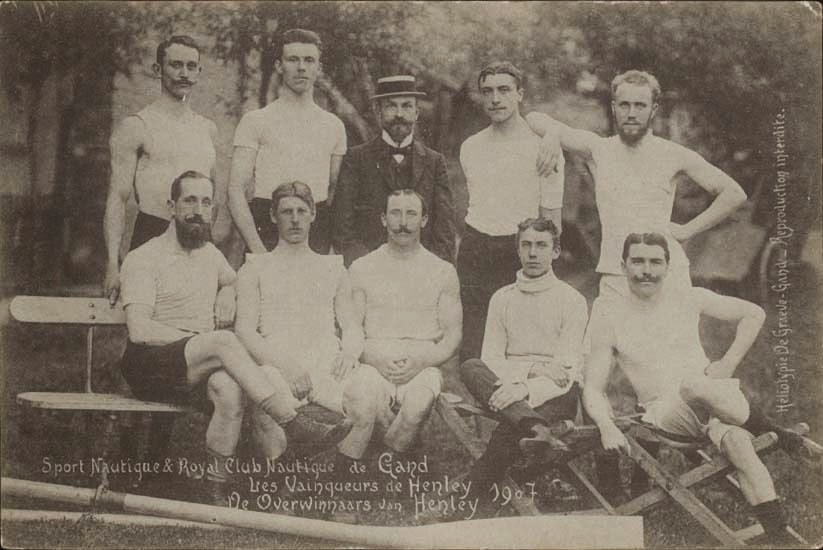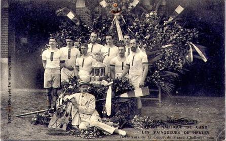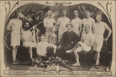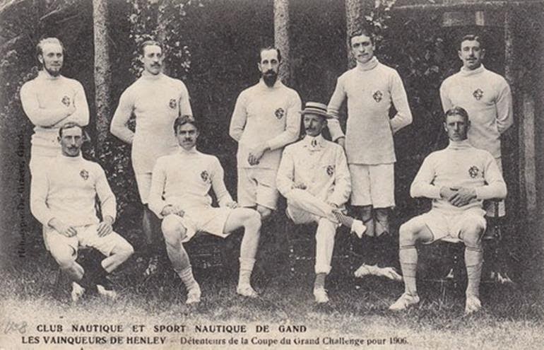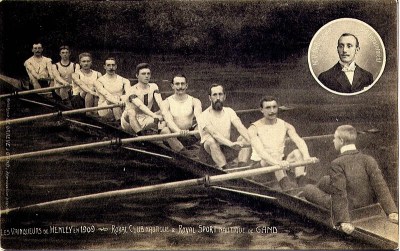 An analysis the Belgian crews who raced at Henley between 1906 and 1909 prove that ‘Club de Gand’, ‘Sport de Gand’ and the ‘Belgian Olympic eight’ bore remarkable similarities. Of the 15 rowers used in the four years, seven men raced in three or more years, while Oscar De Somville (7) and Rodolphe Poma (stroke) raced in all four years. It is also noteworthy that De Somville and van Landeghem were Olympic silver medallist in the eights in the Paris Games in 1900.