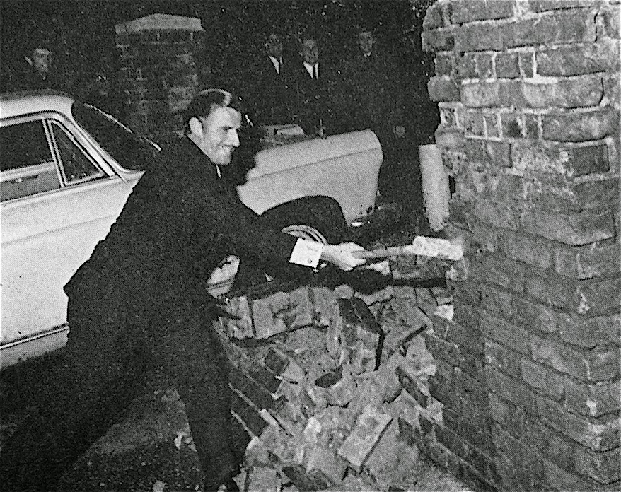 Hill demolishing part of the London RC clubhouse in 1968. I think modern attitudes to driving a car into a brick wall for a stunt may be different.