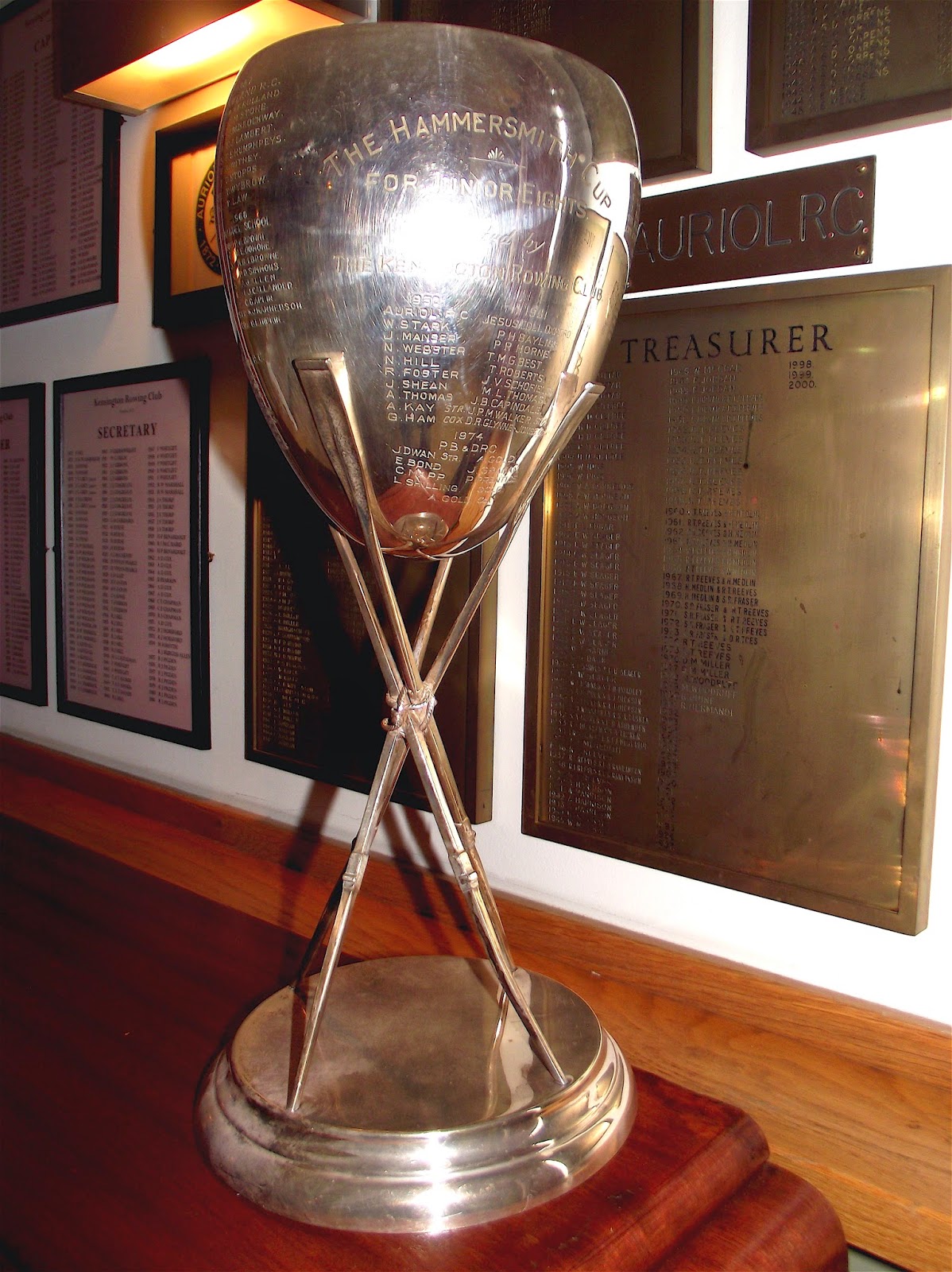 Hill’s first trophy (albeit shared) The Hammersmith Cup for Junior Eights.