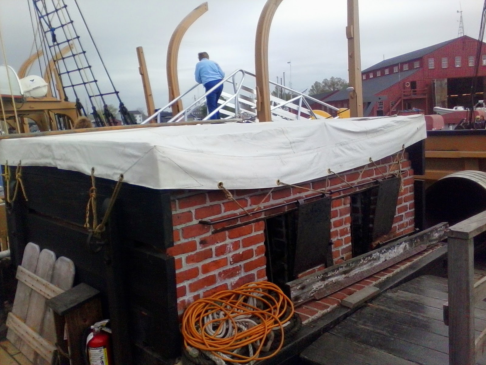 The tryworks, the oven where the whale blubber was boiled into oil, is still on board the Morgan.