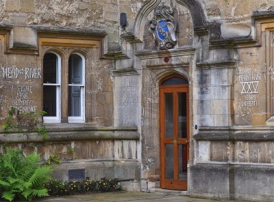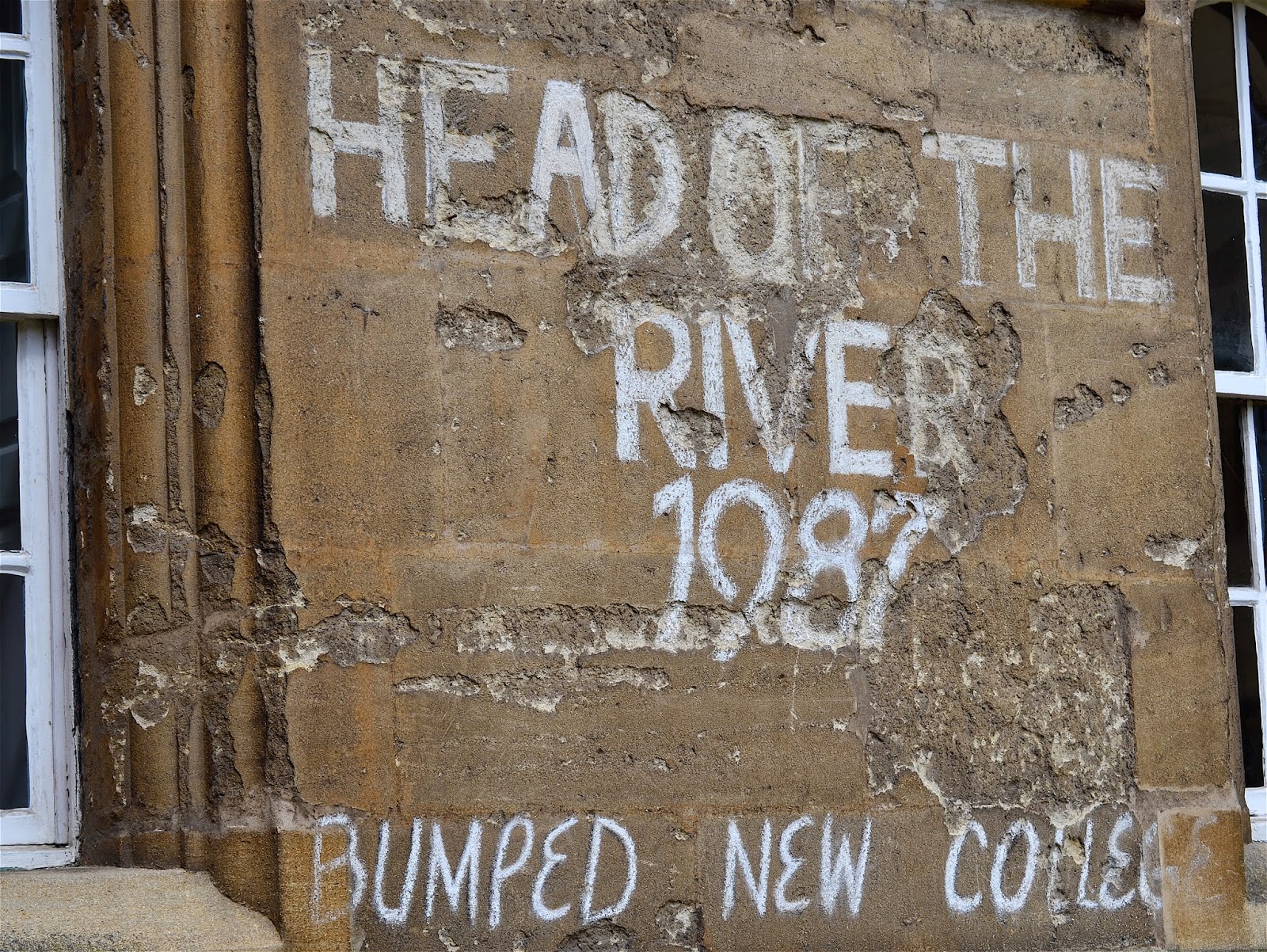 At both Oxford and Cambridge, victorious boat clubs are allowed to mark the walls of college with graffiti marking rowing successes. The door shown leads to the rooms allocated to the Captain of the Men’s Boat Club.