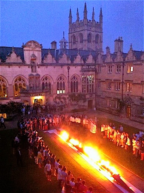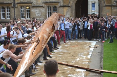 Following the Bumps Supper, the smashed boat is burned in the quad. Traditionally the students jump over the burning hull though, in these more safety conscious days, this is discouraged. I was not able to stay for this part of the proceedings and this picture was taken by Jonathan Craven in 2012, yet another year when Oriel were Head of the River.
