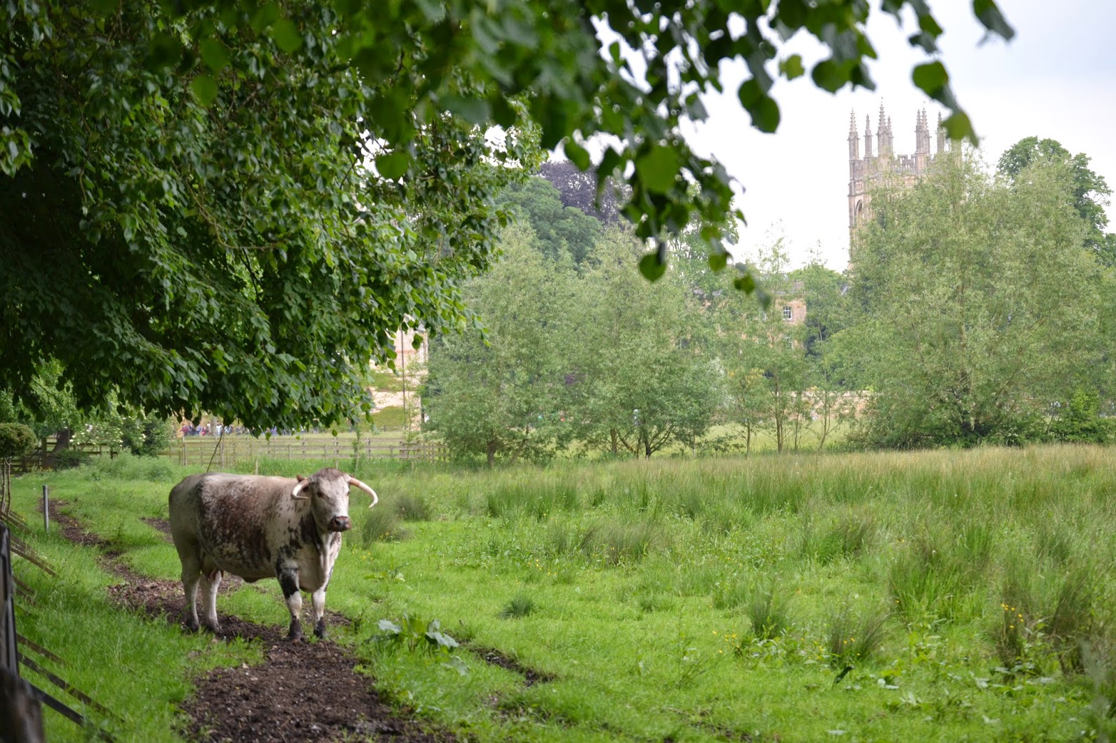A bucolic scene in Christ Church Meadow. As the victorious Oriel party goes past, this cow looks as though she has seen it all before.