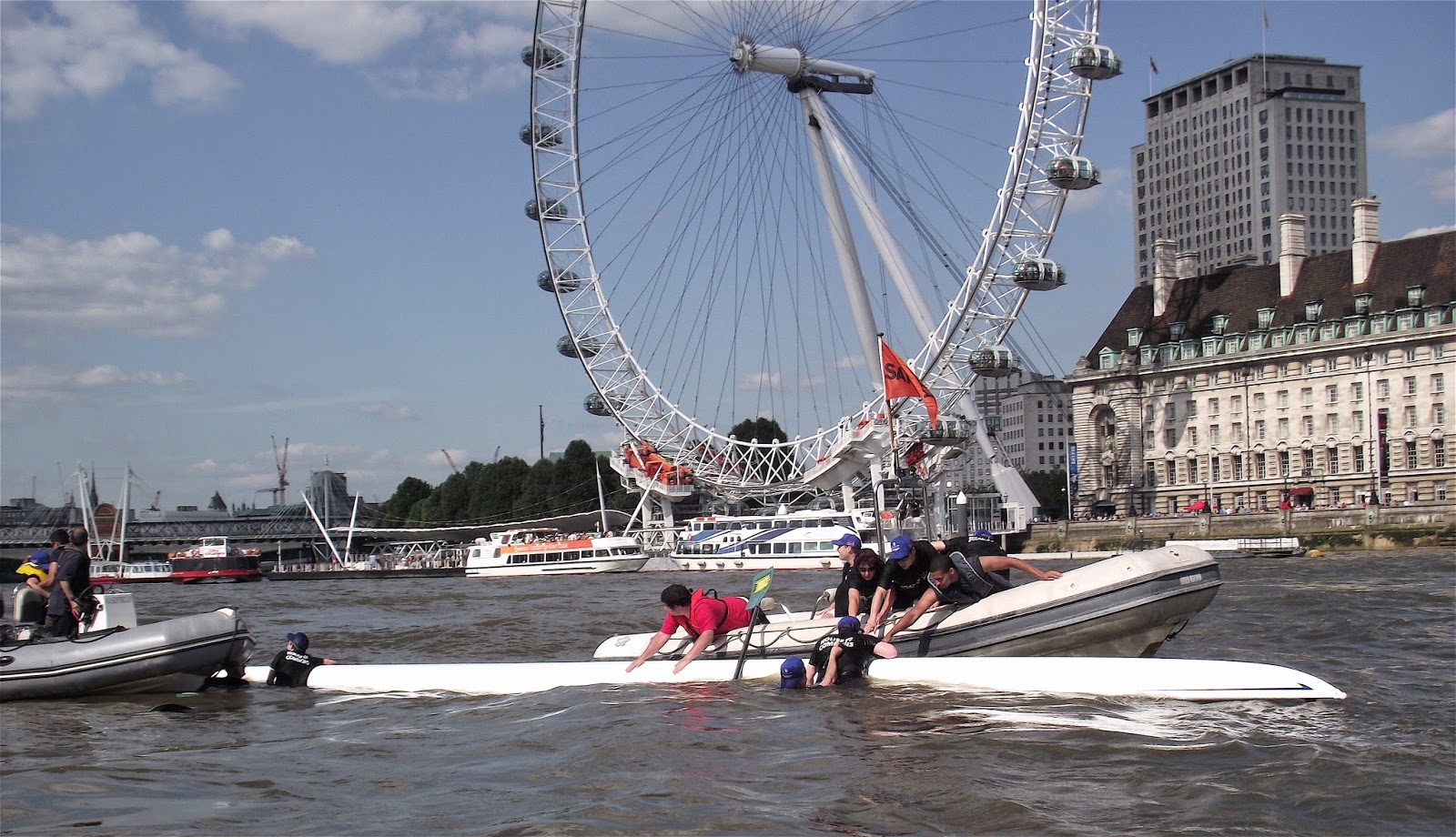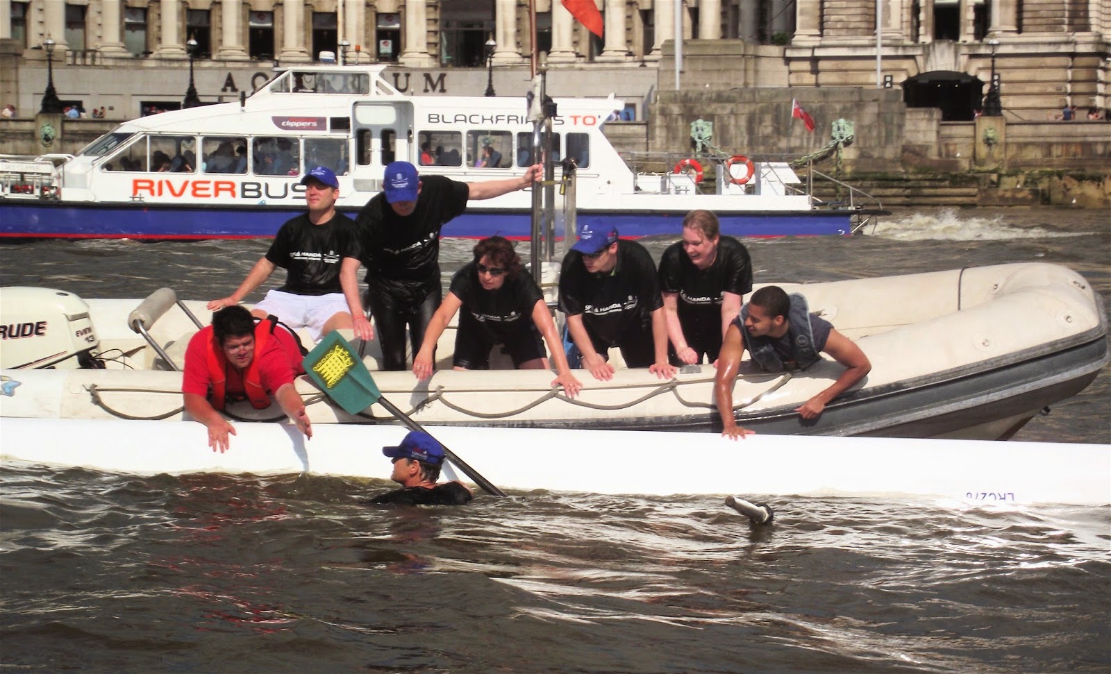 The eighth Parliamentary Boat Race took place today, 12 June. A full report will follow shortly but here are some pictures taken just after the finish when the Commons boat overturned and the crew ended up in the water. Fortunately they all remained calm, it was a warm day, several rescue boats were very close by and everyone was safe within a few minutes. Within twenty minutes the Members of Parliament were taking part in a House of Commons vote.