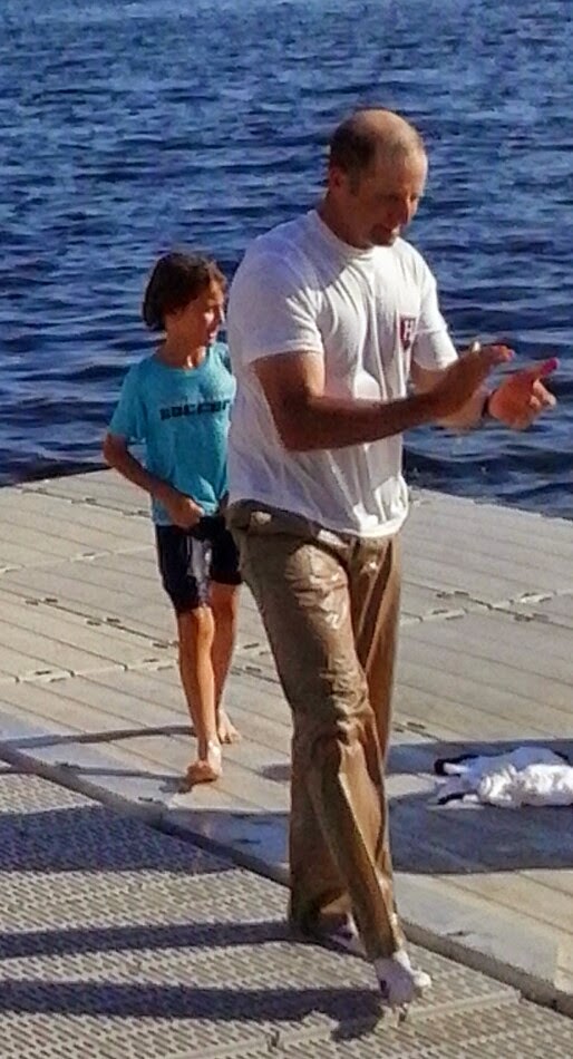 After the traditional winning photograph of the crew with their coach, the latter was tossed in the river. Charley Butt did not seem to mind it at all, and after some seconds in the water, he was joined by the crew, and by his young son, who voluntarily took a dip in the Thames. Standing on the dock, wet, but happy, Butt kindly agreed to answer some questions even from an obscure blog reporter as yours truly. My first question was obvious:
