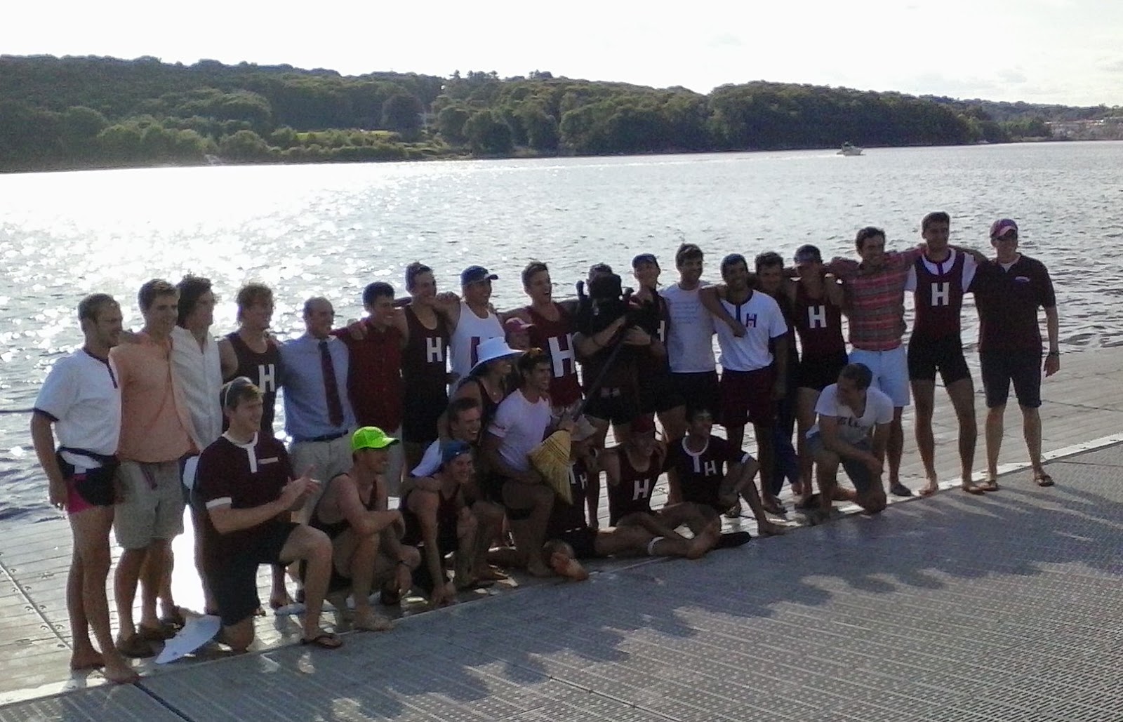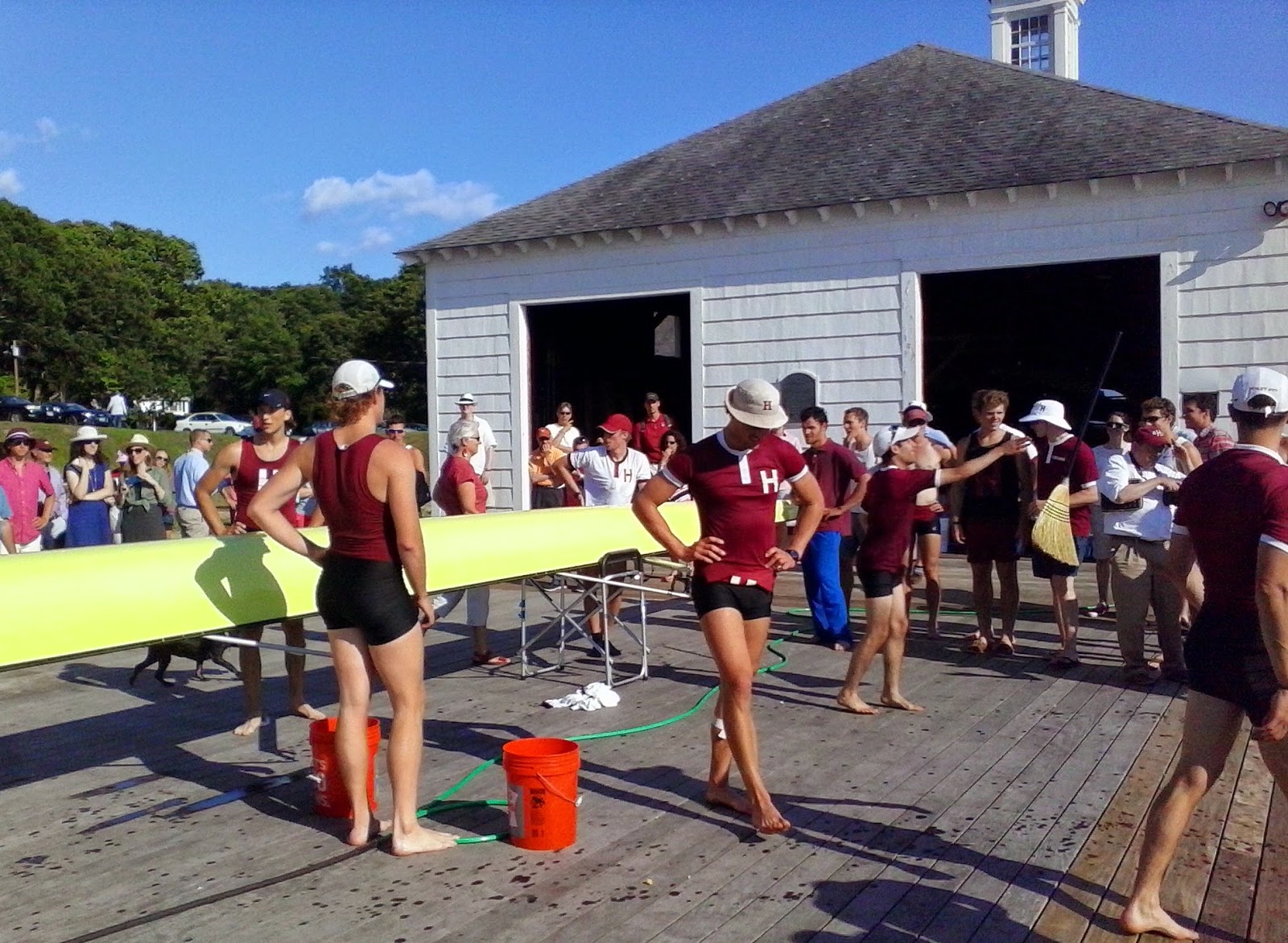 Winning Harvard crews getting ready to celebrate – Crimson now leads the series with 96 victories to Yale’s 54.