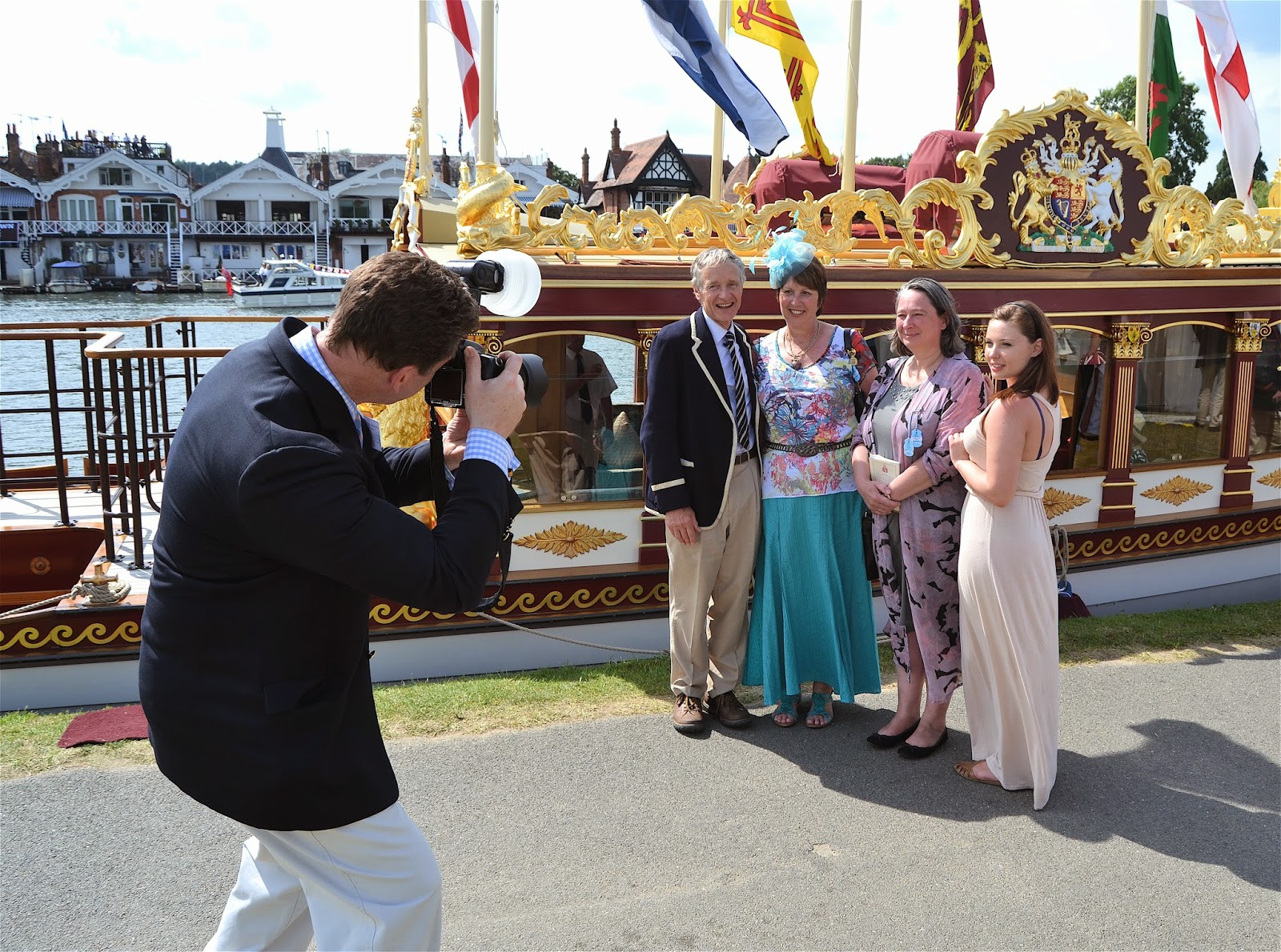 My day was spent in the delightful company of some very special guests, all linked by a common theme. I had invited John Beresford (son of Jack Beresford, Britain’s most successful oarsman in the pre-Redgrave era) and Sue and Molly Bushnell (daughter and grand-daughter of the indomitable Bert Bushnell) as my guests. When we met up later in the day with Tizzy Burnell, daughter of the former ‘Grand Old Man’ of British rowing, Richard ‘Dickie’ Burnell, we had a gathering of the ‘Children of 1948’. ‘Bert and Dickie’, coached by Jack, were, of course, the unlikely pairing who won the double sculls at the 1948 London Olympics, an event recently dramatised in a BBC television programme. As regular readers will remember, this production was extensively covered by ‘Hear The Boat Sing’. This meeting was made even more special through the generosity of the Chairman of Henley Royal Regatta, Mike Sweeney, who arranged for us to follow two races in the umpires’ launches and allowed us access to the hallowed Committee Lawn, an area for the Stewards and their guests. It was a gesture very much in the traditions of Henley and was much appreciated by all concerned. Here are some pictures of a memorable day.