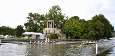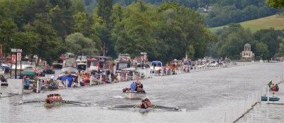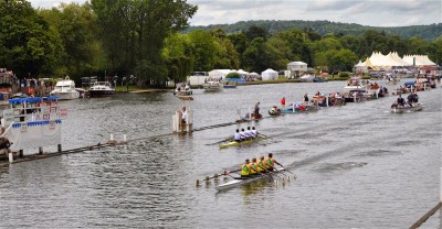 In the Queen Mother, the race for Men’s Open Quads, there was an exciting battle between the French National Quad and the National Training Centre, Australia. The French led by a few feet off the start, the crews were level at Fawley (approximately half way) and then Australia went in front. They were level again at Remenham but by the Mile the Aussies led by a canvas and by 1/2 length at the Mile 1/8. They moved away at the Enclosures to win by 2 1/2 lengths.