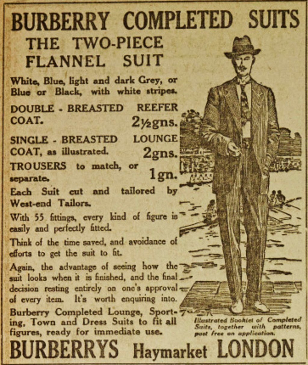 The Daily Telegraph is right now running a series called “Life on the Eve of War” with episodes called, for example, “Women’s Rights in 1914”, “Art & Culture in 1914”, “Food in 1914”, “Cars & Planes in 1914” and “Fashion in 1914”. More is to follow, and we hope that eventually there will be one piece called “Sports in 1914” (I guess, hoping for a “Rowing in 1914” would be to ask for too much…). While we are waiting for this episode, you can enjoy Drusilla Beyfus’s “Fashion in 1914” in which you will find the image above, an advertisement for Burberry suits showing a gentleman at a rowing regatta, probably Henley.