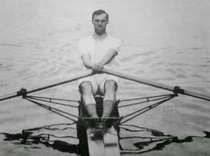 Kelly’s last and perhaps greatest race was the 1908 Olympic Final in which his Leander crew beat the Belgians. Here he is standing on the far left of the crew known as ‘The Old Crocks’.