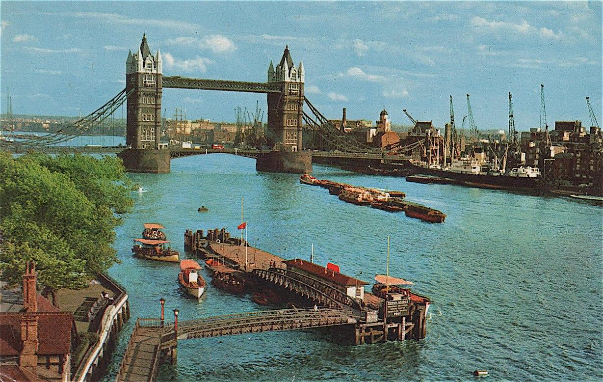 The remaining warehouse are now luxury flats and the wealthy residents, perhaps typically employed in the financial district known as ‘The City’, are a world away from the generations of Londoners who led a tough and precarious existence working river, wharf and warehouse. For most British people of a certain age, our only memory of the Pool of London is from Winston Churchill’s funeral in 1965 when the dockers near Tower Bridge dipped their cranes in salute as the coffin was carried up the Thames on the way to burial at Blandon (see the last 25 seconds of this film).