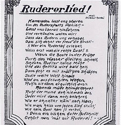 I recently came across a German rowing song from the late nineteenth/early twentieth century and asked an old crewmate, Jochen Kauschmann, to translate. This he did and also provided some history and context.