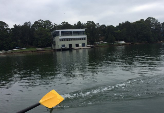 The Grumpy Oarmen of Drummoyne RC, set of this morning for a 5 km row to the start line just east of the Opera House.