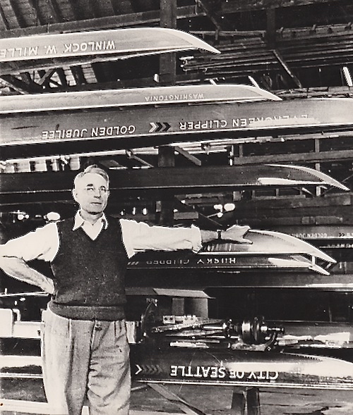 The son of an Eton College boatbuilder, George Yeoman Pocock immigrated to Vancouver, Canada, in 1911. Many disasters and false starts followed but the performance of George’s boats in the 1923 IRA Championships ‘began the legend of Pocock Racing Shells’. In Brown’s words: