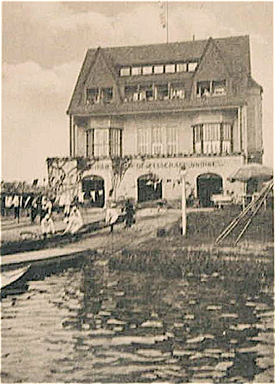 The Rowing Club ‘Oberspree’ was founded in 1905. It was so named because it was located along the upper part of the river Spree in Ober Schoeneweide about eight miles south-east of Schoeneberg…. The club had a membership of fifty men and their families…. (The) facilities were simple and functional….. For sleeping purposes there were two long sheds offering beds and bathroom facilities. The houses were well equipped and comfortable enough to allow families to spend a night or two as desired. The main building was also constructed basically, housing a kitchen and large assembly room for meetings and socialising…. Outside the main hall was a large grassy area where one found tables and chairs… It was here lunchtime as well as ‘coffee and cake’ time were pleasantly spent. The lawn extended directly to the water’s edge where people could bathe or just lie in the sun. The swimming area was separated from the boat launching area by a wooden dock…. In 1937, the name of the club was changed to ‘Jüdischer Ruderclub Oberspree’.