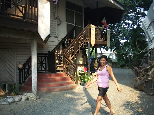 It’s a homely place. Hens occupy the yard. The club pooch guards the boatshed door, and the resident cat curls up under the wall with its proud old English Gothic typeface announcing the name to passing vessels. There’s an oil depot stretching away on the opposite bank, but the Pasig provides several kilometres of rowable water amidst floating vegetation and the occasional wake of a ferryboat. Currently half of the 50 members take to the water regularly under the direction of Ben Rodoy, the club’s coach, manager, fixer and chief bottle washer, and my host for my regrettably fleeting visit.