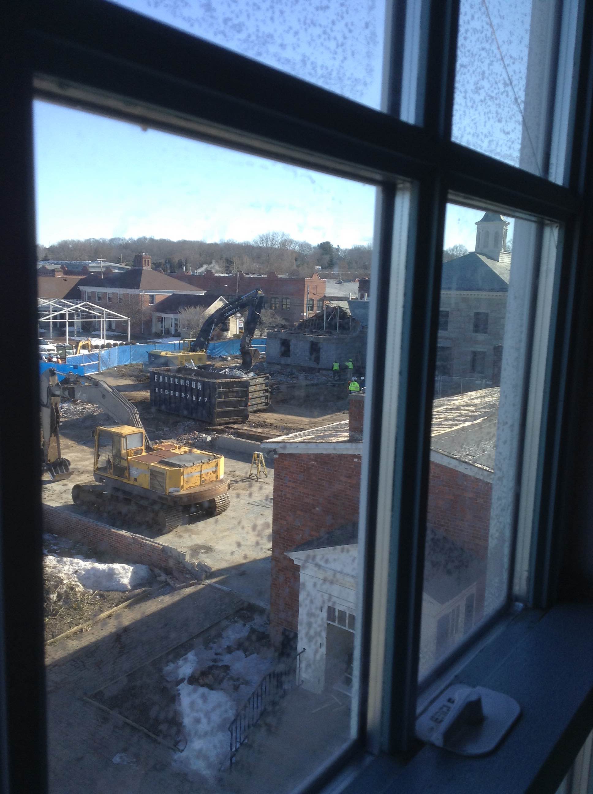 For those of you HTBS readers who earlier have expressed sorrow that the National Rowing Foundation’s National Rowing Hall of Fame at Mystic Seaport, in Mystic, Connecticut, has closed, been packed and shipped off to an unknown future, here is the last nail in the coffin: the G.W. Blunt White Building is right now being demolished. It’s a sad sight to see: