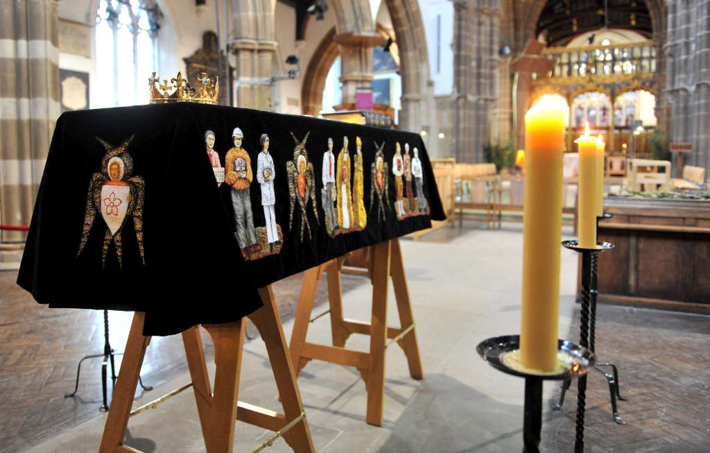 It could have escaped few people’s notice that in 2012 the remains of Richard III, King of England from June 1483 to August 1485, were found under a car park in the English East Midlands city of Leicester and have just been reinterred in the city’s Cathedral. Between 23 and 25 March, the coffin holding the remains was ‘in Repose’ in Leicester Cathedral for the public to view and over 20,000 people, including myself, filed past the casket during this time. Earlier, more than 35,000 people turned out to see the cortege parade through parts of Leicestershire. A group called The Plantagenet Alliance, made up of distant relatives of Richard, had previously got a High Court review of the licence to reinter the bones in Leicester as they wanted the remains buried in York but they eventually lost their case.