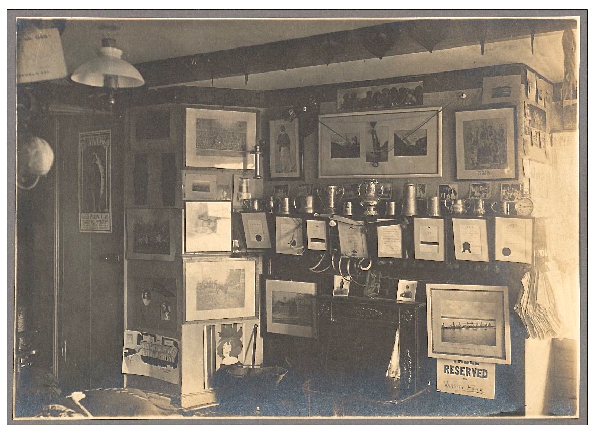 Rudolph Chambers Lehmann was a multi-talented man. Outside of rowing, he was a Liberal Party politician who was a Member of Parliament from 1906 to 1910. He was also a writer, musician and poet who most famously contributed to Punch and Granta magazines. One of his poems, “A Ramshackle Room”, has previously appeared on HTBS and goes well alongside the dorm room picture. Here are the first three verses: