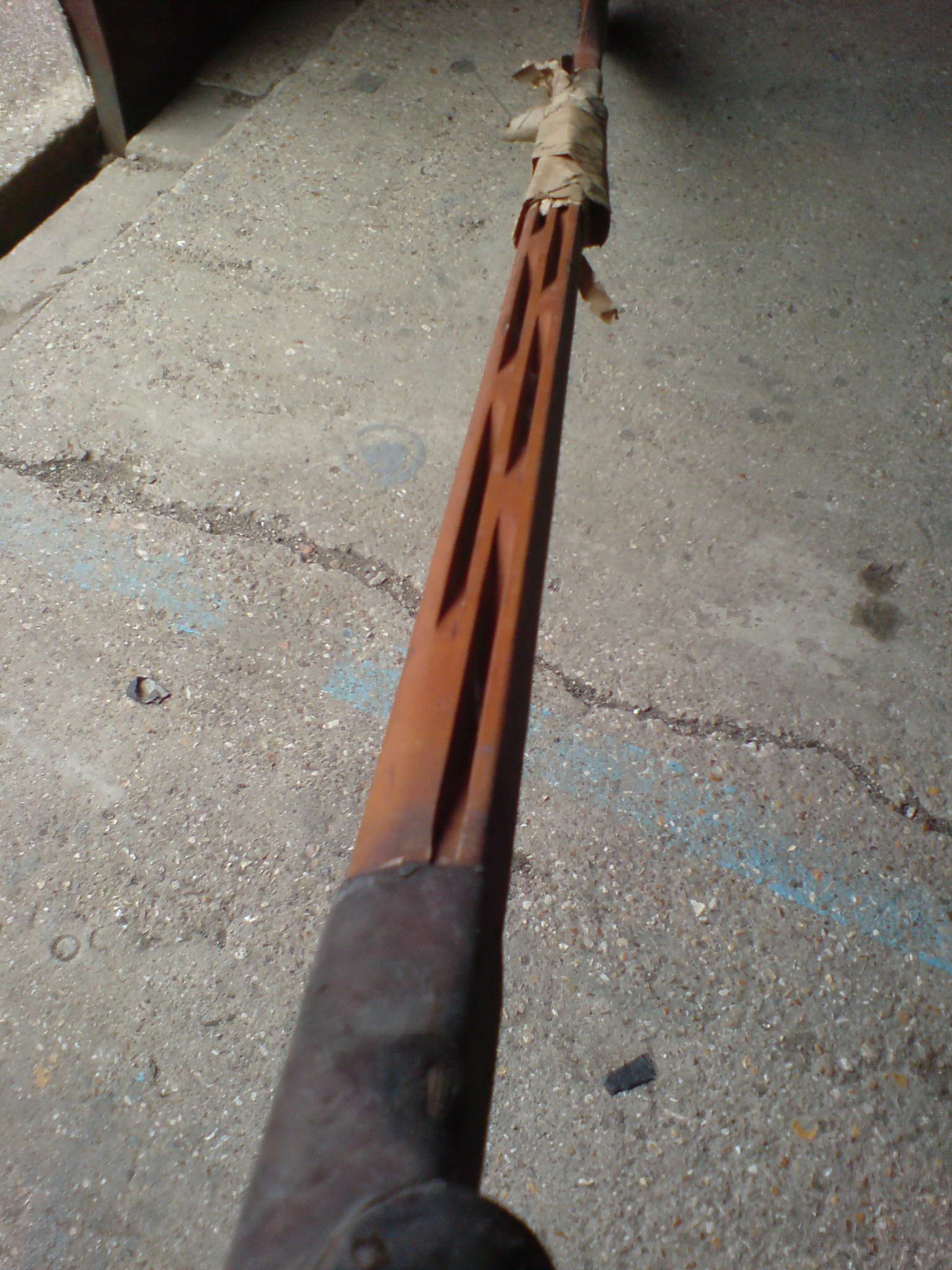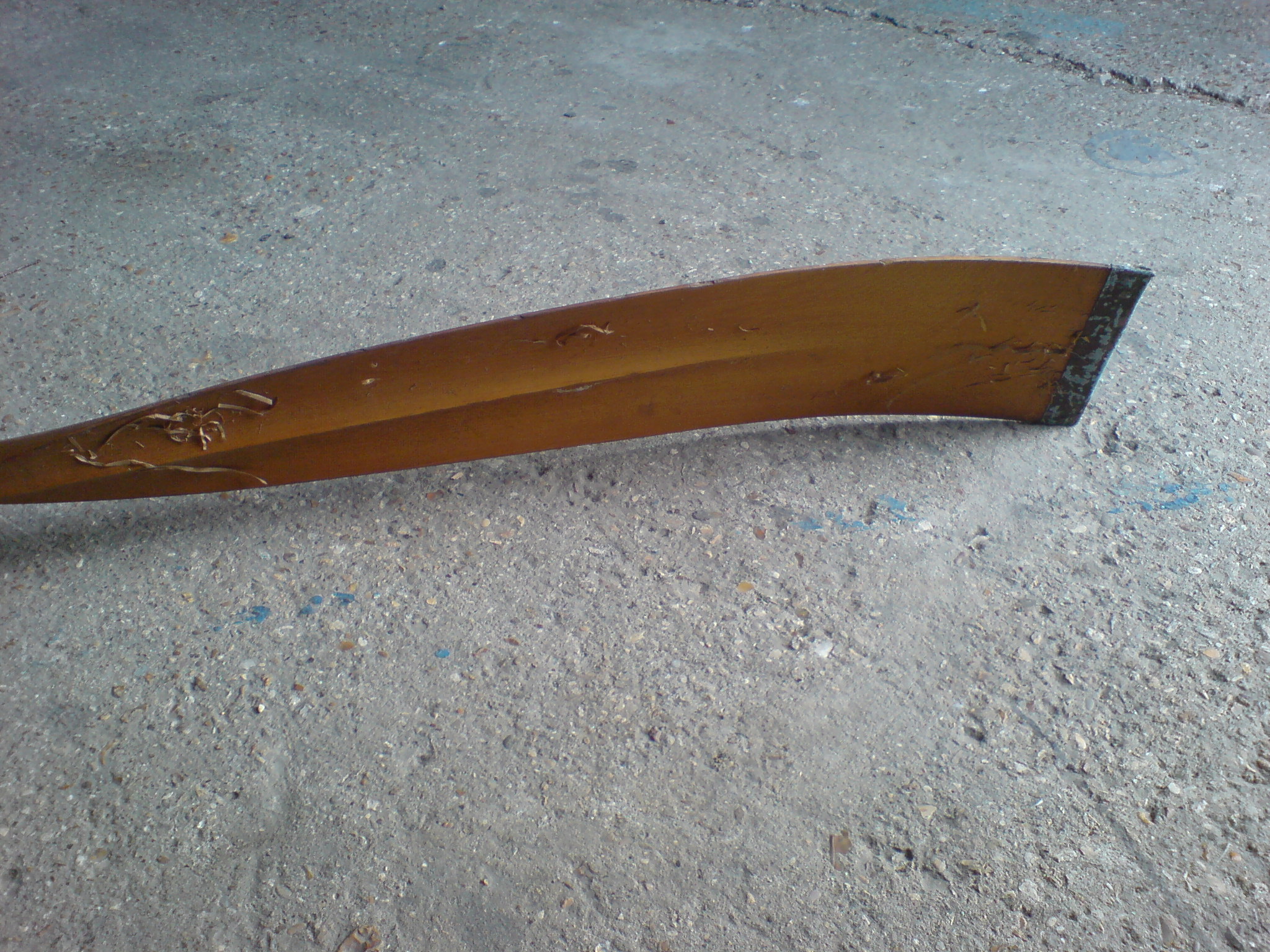 ‘The oars were made for use with “thole pins” (fixed wooden “posts”) not swivel oarlocks, which were used pre-WWI and by some crews after The Great War as well. The “double girder” shaft with through-holes to lighten the shaft was not widely used. Thus, yours is quite unique and is probably one of very few like it left – anywhere.’