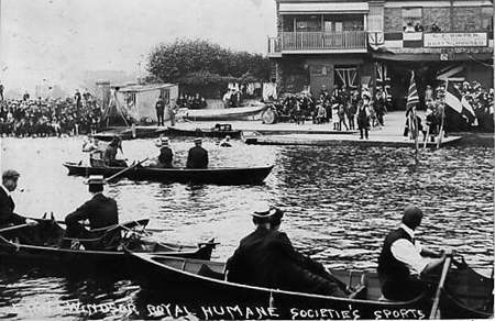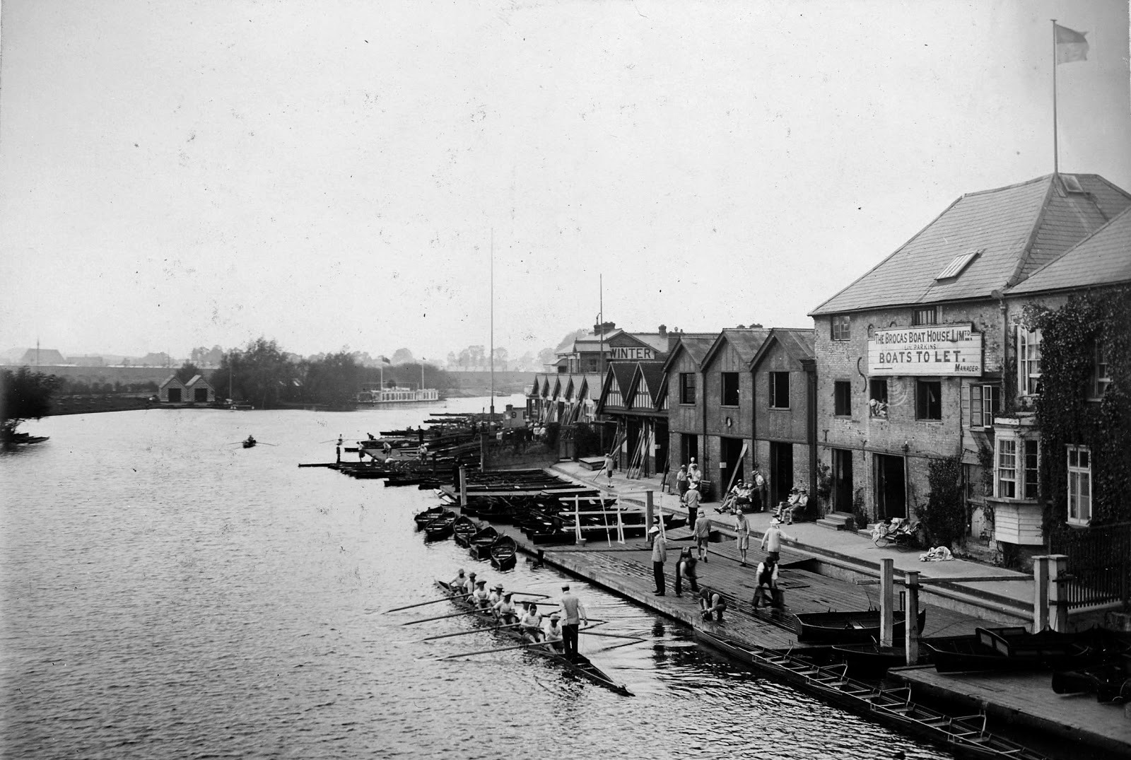 Doing research about G.F. Winter, Paul came across some old photos of the Winters boat establishment in Eton, next to the old, he believes, now demolished boat house. He continues: ‘In two photos (1898 [see on top] and 1910 [see below]), you have to look closely to see the Winter signs’.