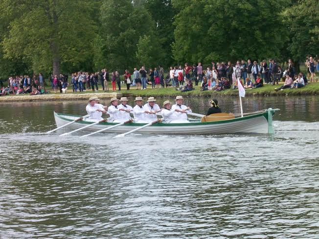 At yesterday’s anniversary celebrations in Oxford, where Brasenose College Boat Club and Jesus College Boat Club organised a well-attended get-together to celebrate that it was 200 years ago the two boat clubs first met for a Head of the River Race, which William O’Chee and Christopher Seward wrote about on HTBS yesterday, the two clubs rowed a celebratory race. The crews raced each other in two replicas of old-fashioned cutters. Rowing historian Chrisopher Dodd, of the River & Rowing Museum, was there to take some photographs.