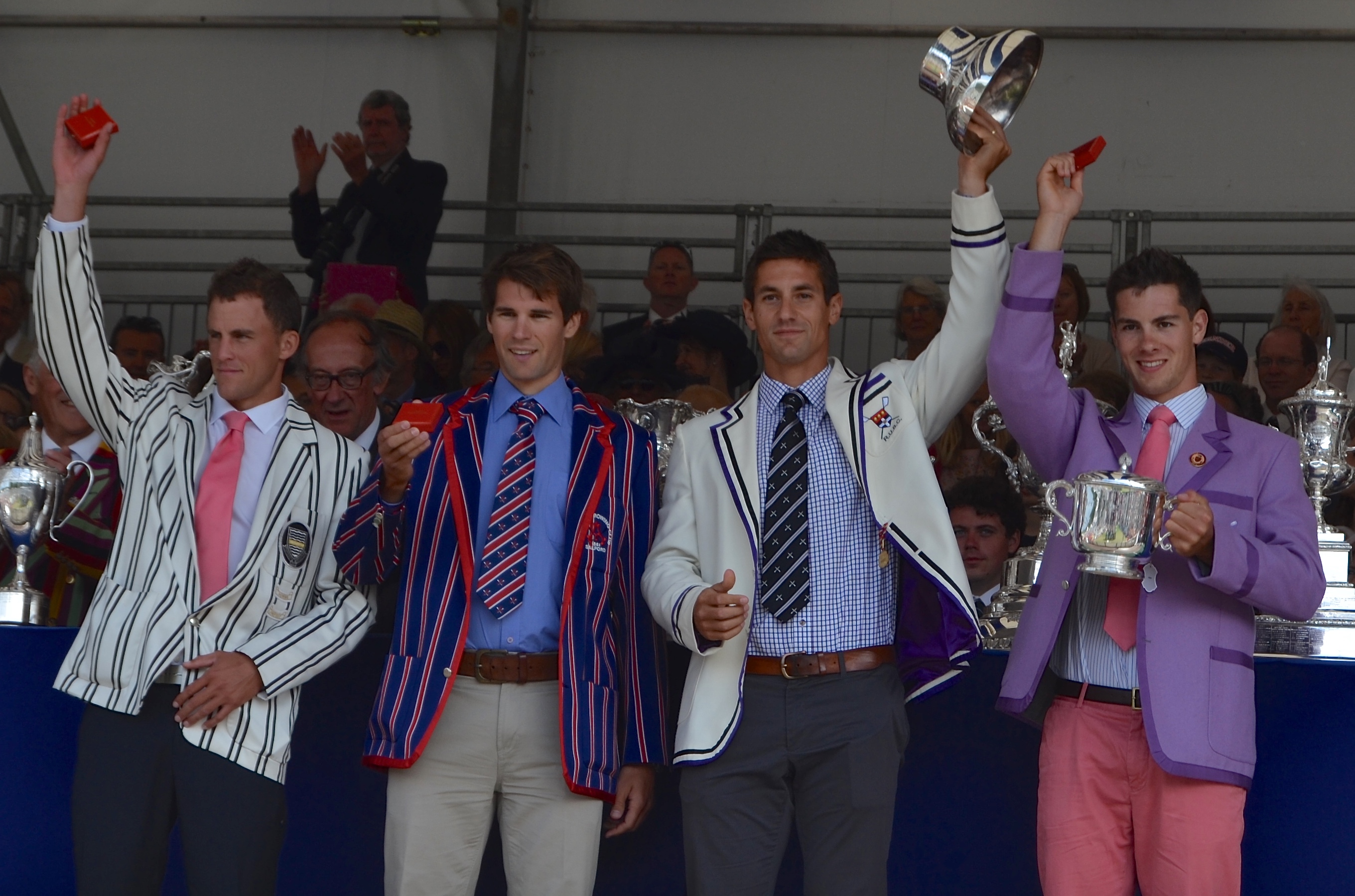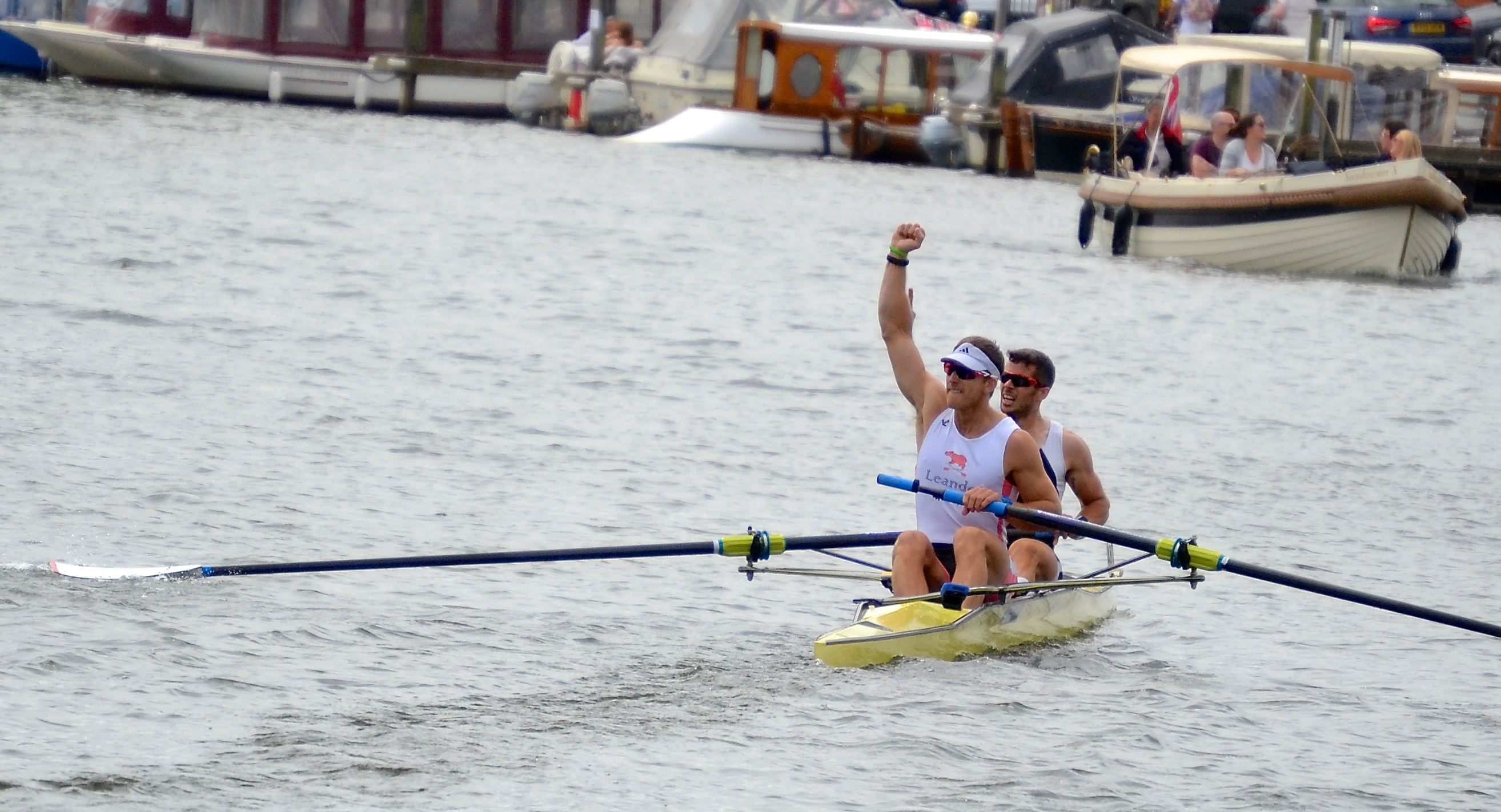 The Double Sculls Challenge Cup (M2x): J.E. Collins & J.F.L. Walton (Leander Club) beat J.M. Thompson & J.E. Smith (University of Pretoria, South Africa) by 2 1/3 lengths.