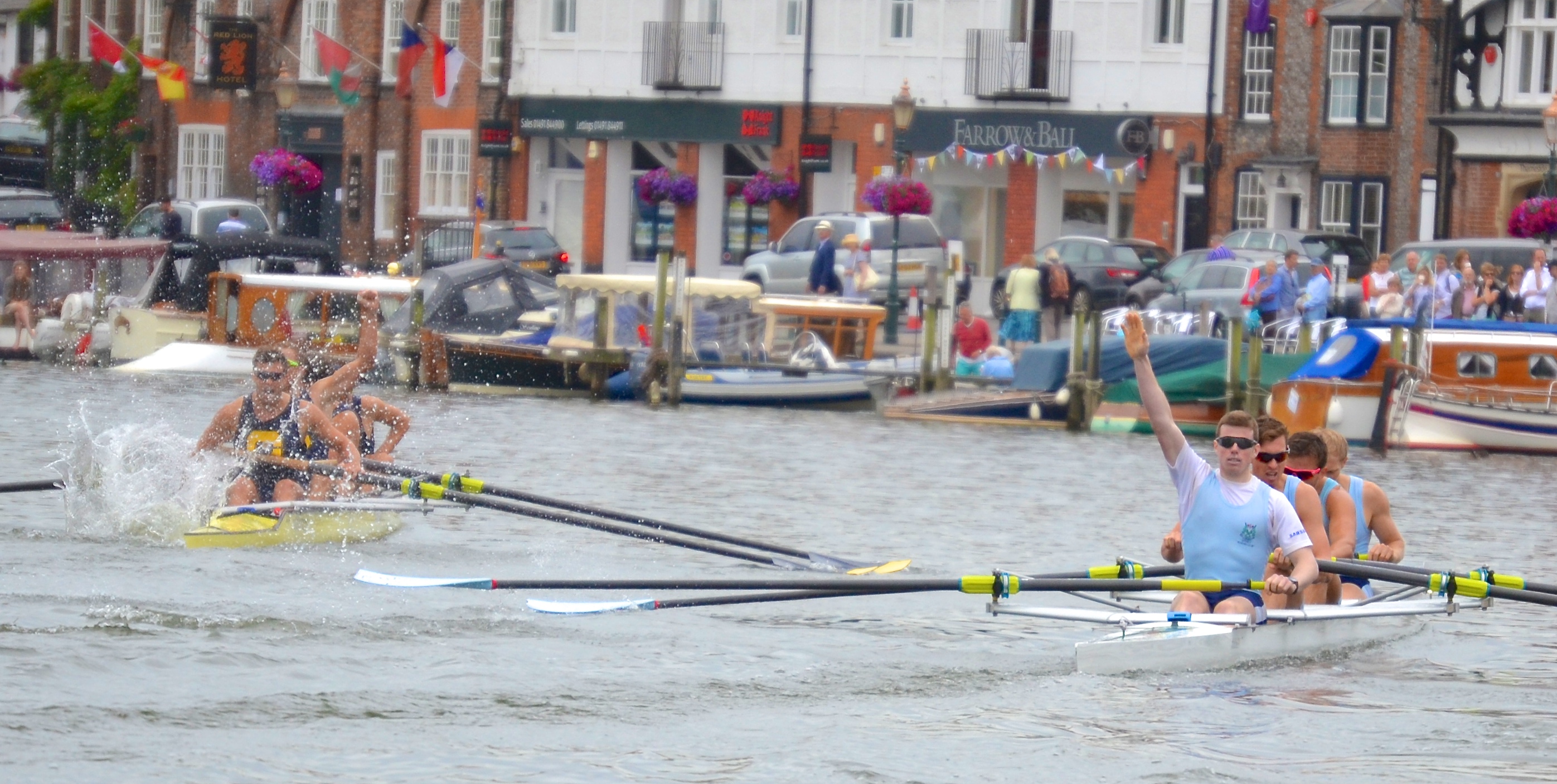 Thames rowing Club had not won the Thames Cup since 1934 but this year they had four crews in the event. In his pre-Henley predictions, ‘Fatsculler’ said: (The Thames ‘A’ crew) won the Vernon Trophy at the Head of the River for the first time since 1961. They raced at Marlow, finishing 3rd in Elite 8’s but being the fastest Thames Cup eligible crew. They’ve made the semis every year since 2010 and were beaten finalists in 2012. This year may well be the year they finally get their names on the trophy.