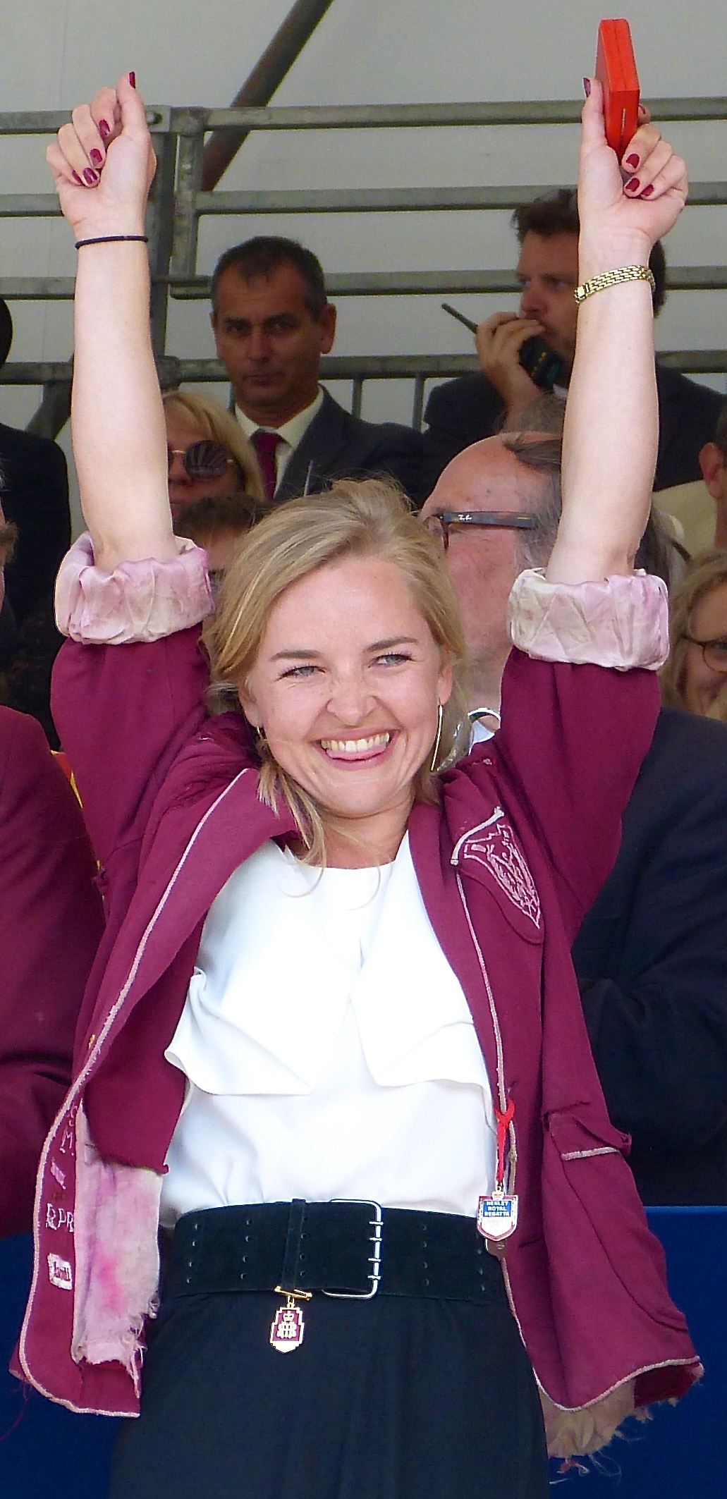 Victory: Nereus cox Fetter jubilant at the prize giving, her tattered blazer reminding us of the Dutch student tradition of passing on such garments to the next generation of rowers, the jackets uncleaned and unrepaired. The names of previous owners can just be seen embroidered on the inside. Watch the real final of the Temple, the Friday Brookes v Nereus race, here.