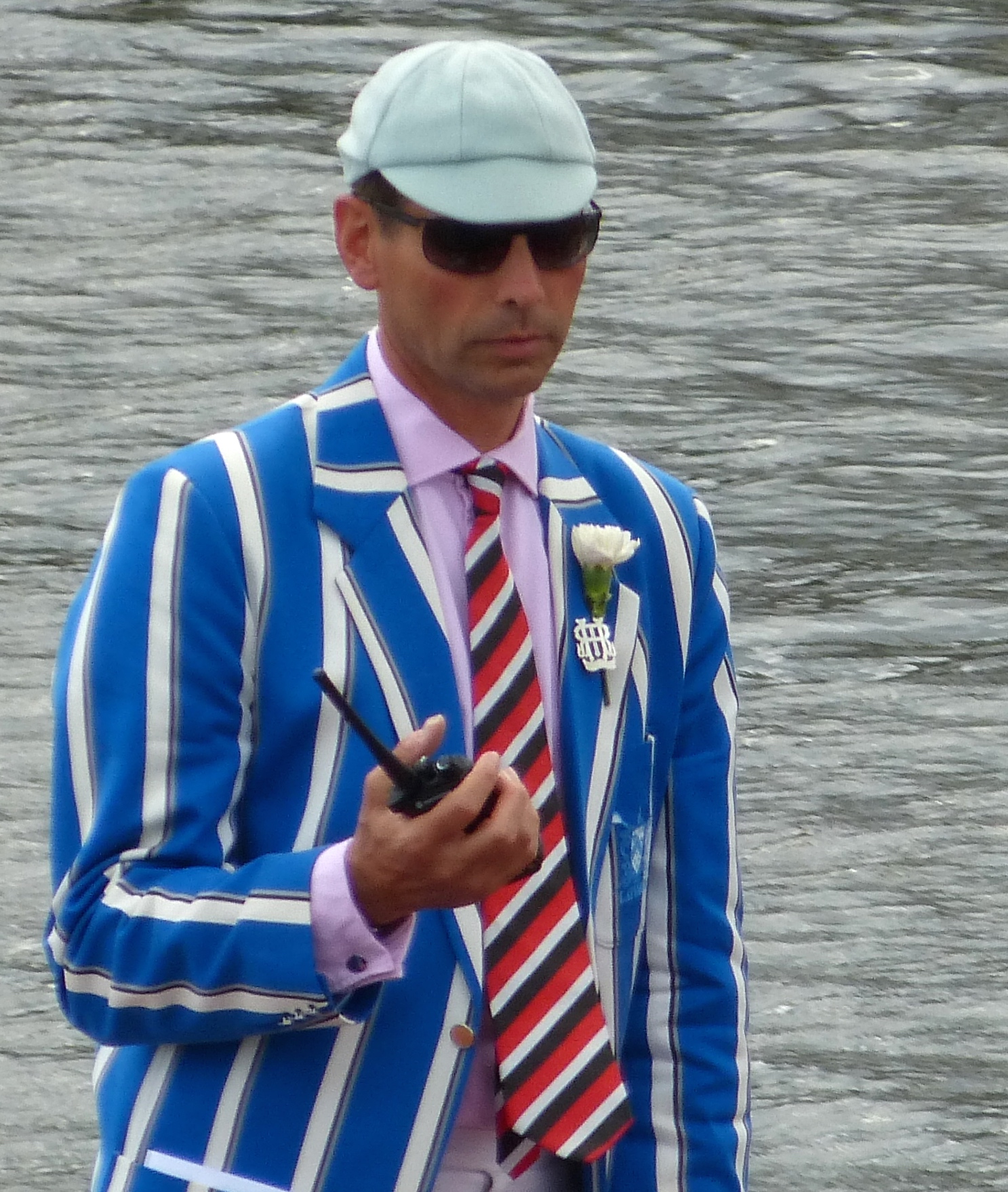 Defeat: Stanford University, just having lost to Molesey Boat Club in a semi-final of the Princess Grace Challenge Cup. See the race here.Warming Up: London ‘A’ get ready for a Thursday heat of the Thames Cup.Cooling Down. While it is usual to go for a ‘cool down’ row after winning a heat, it is less common to do so after winning a final – when the crew is keen to get back on land and start celebrating. However, when Western Rowing Club of Canada won the Remenham final on Sunday, their veteran cox, seven times Olympian, Lesley Thompson-Willie, remained the true professional and made sure that her girls cooled down properly.Competitors: Not ‘The Scream’ but ‘The Yawn’ from Monahan in the bow of Columbia’s Temple boat on Thursday (I do not think he is bored, stress makes me yawn as well).Competitors: Green Lake’s ‘6’ man Paschino and cox Nelson after losing to Thames, the eventual winners, in a Thursday heat of the Thames Cup.Umpire Matthew Pinsent in the waterproof clothing given to such officials. The blue jacket and white over-trousers maintains the ‘blazer and flannels’ look, even in the rain, a typical Henley touch.Umpire Richard Phelps in a colourful combination; Cambridge cap, Latymer School blazer, Thames RC tie. The silver badge signifies that he is a Steward of the Regatta.From the towpath: Passing a crossing point.From the towpath: Going to the start, passing Remenham Club.From the towpath: Going to the start, sharing a busy river.Spectators: Big hat, small boat.Spectators: Straw hats and deck chairs.Spectators: A drinks party at a most desirable residence with a fine view of the finish line. Why wasn’t I invited?