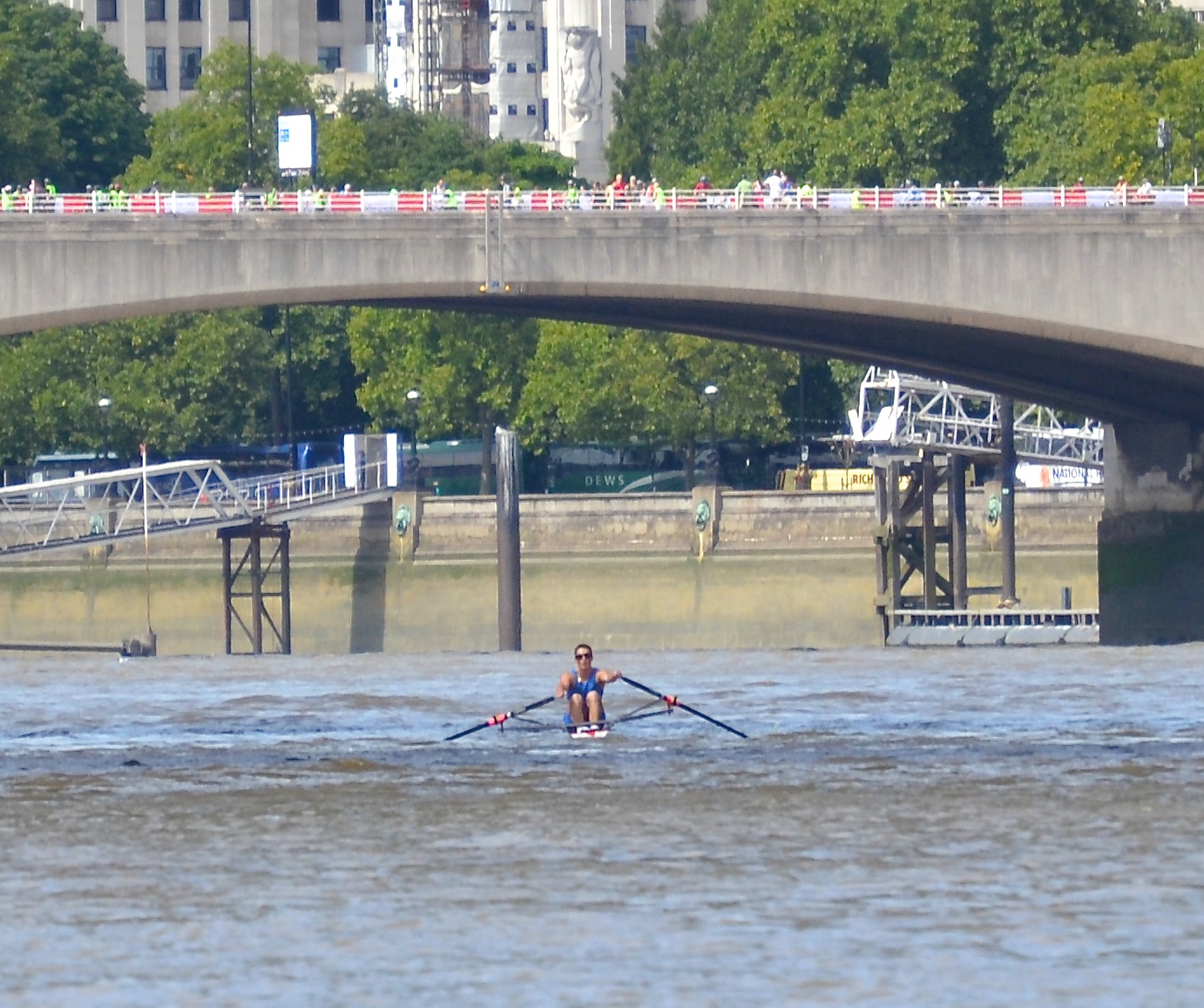 I had a great race, I enjoyed it, I had a plan, I executed it and I came first….. I wanted to go inside…. after Blackfriars but we were level at that point and going across would have caused a clash so I had to fight the centre and it was really choppy but I knew that once it settled, they would have to come across to me and that’s when I could put the hammer down…. At Westminster when I was in front of Ben (Folkard), I knew that if I stayed cool it was in the bag, though I still had a lot to do, it was only half way…. I’m not going to say it’s been easy, it’s been really hard mentally and physically… (but) I enjoyed it, I love my friends, a great day, great atmosphere, the best day of my life……