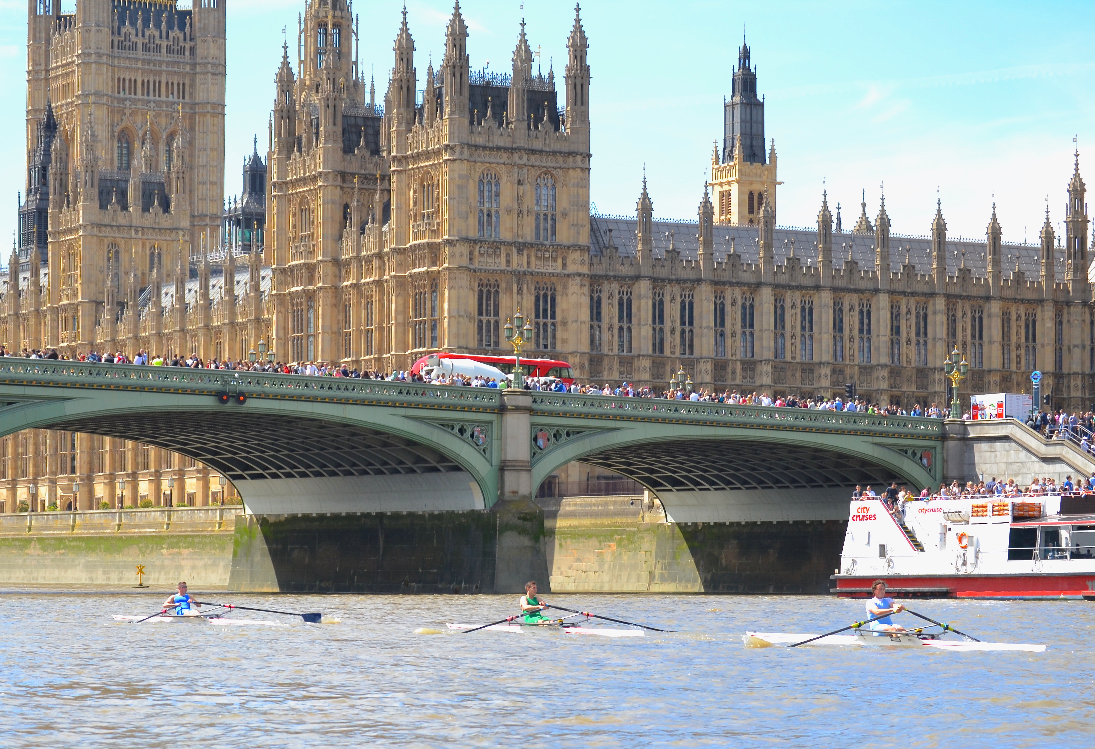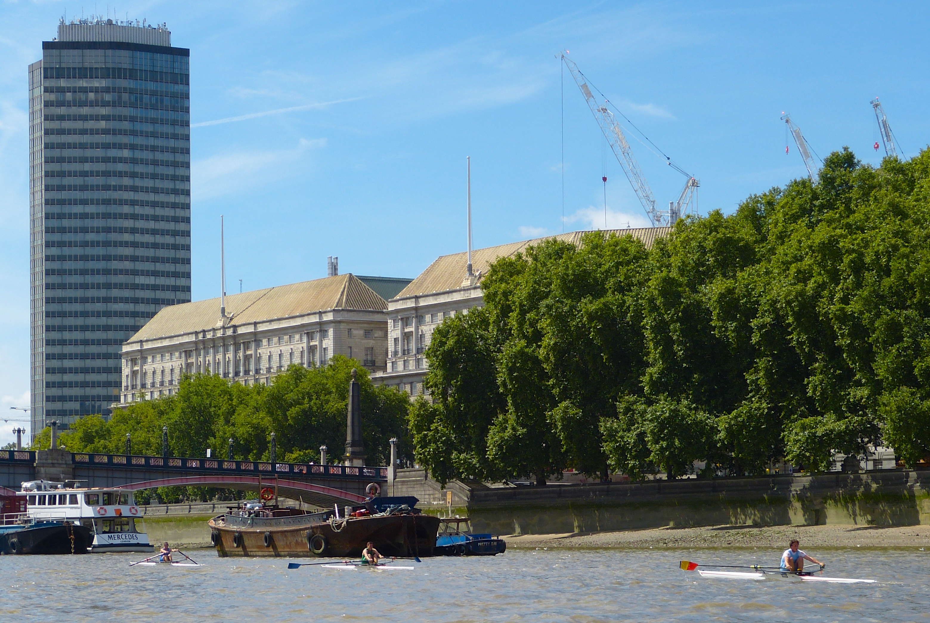 Pettipher, however, was not finished and at the most photogenic part of the course, just before the Houses of Parliament, in the words of Rachel Quarrell, ‘Pettipher’s longer and more effective stroke began to tell’. He put in a big push and in less than a minute passed first Maynard and then Folkard. Pettipher reached Westminster Bridge (2,950 m) in 10.02, Folkard in 10.04 and Maynard in 10.08.