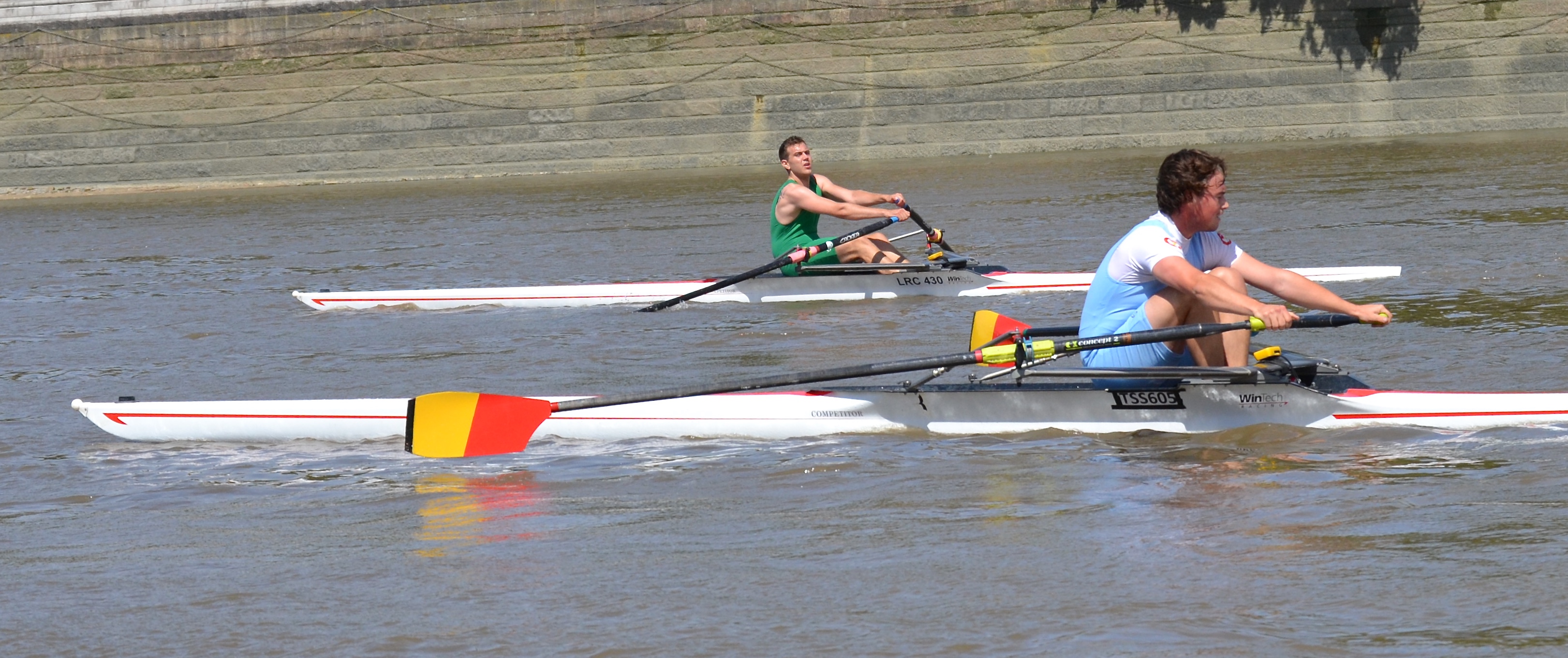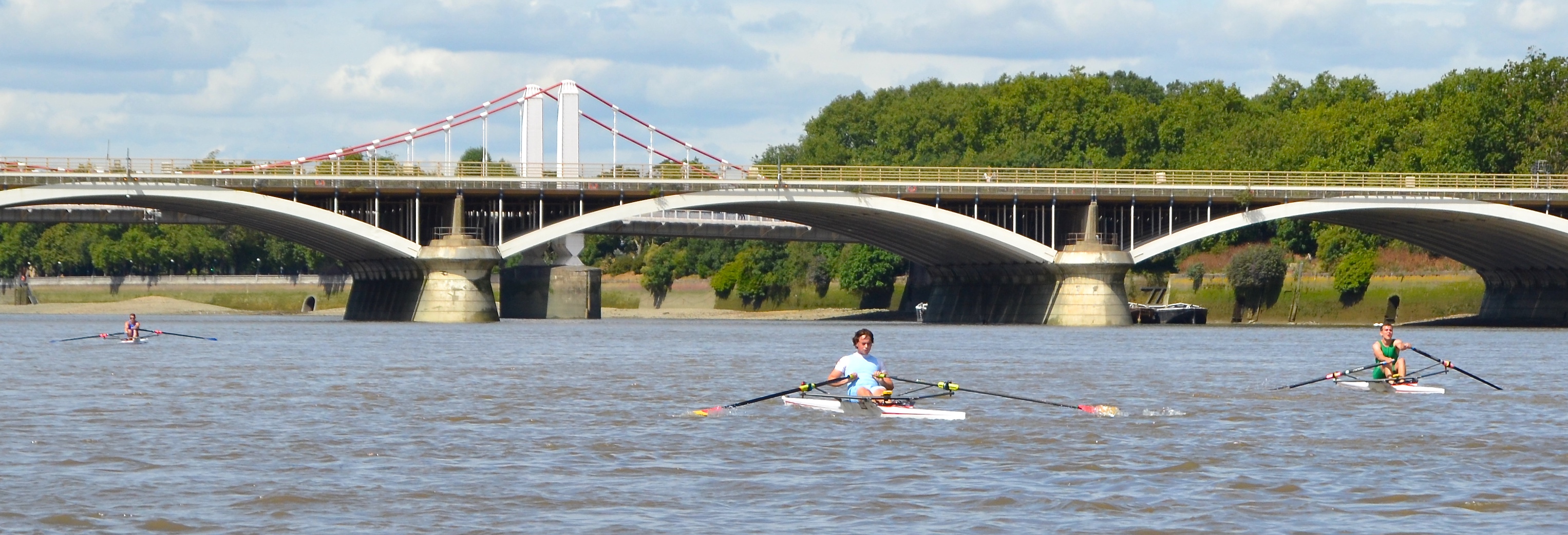 At Battersea it was Pettipher 20.26, Folkard 20.54 and Maynard 20.57 but the fight between the second and third placed scullers was most intense just before and just after Chelsea Bridge (6,300 m). Ultimately however, Folkard hung on and resisted Maynard’s spirited challenges. The official winner’s time for Pettipher was 24.23 with unofficial times for Folkard of 24.45 and for Maynard of 24.52. Eventually, all six competitors finished the course and, in this very tough event, each should consider that a victory in itself.